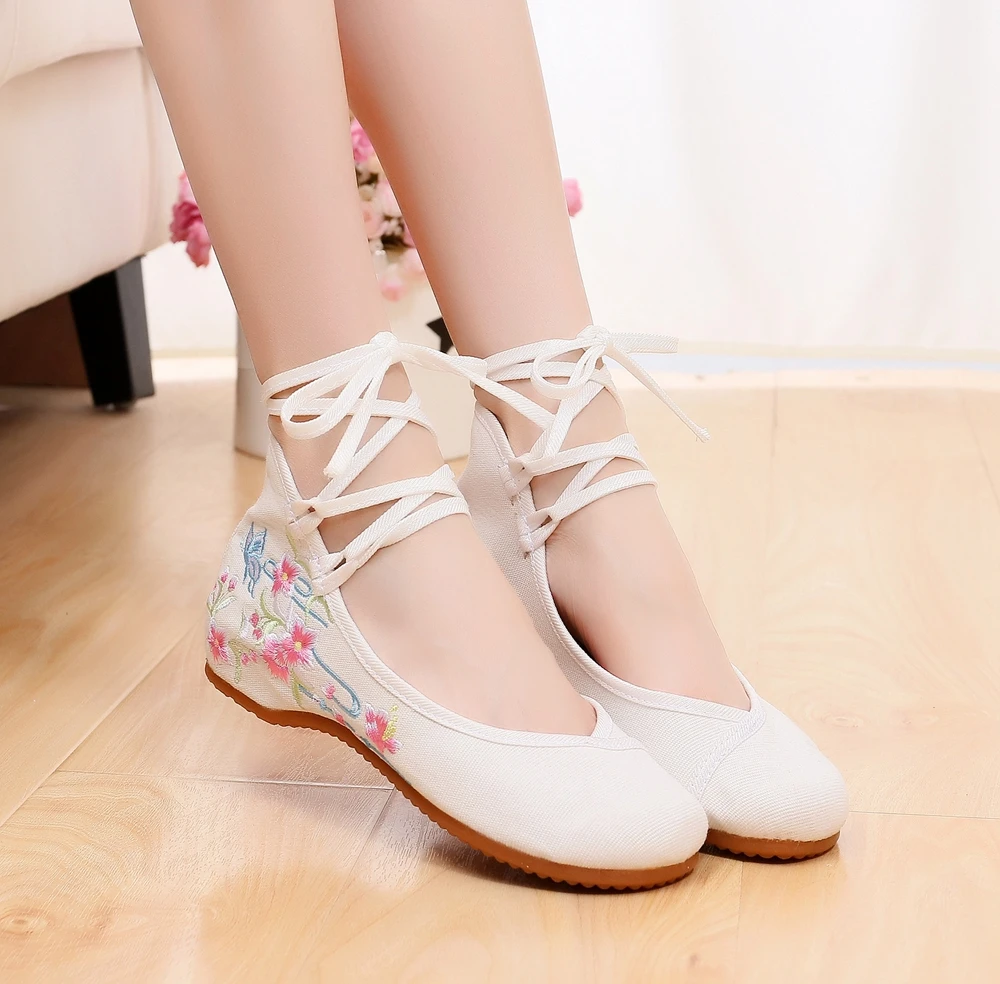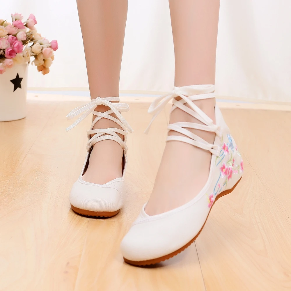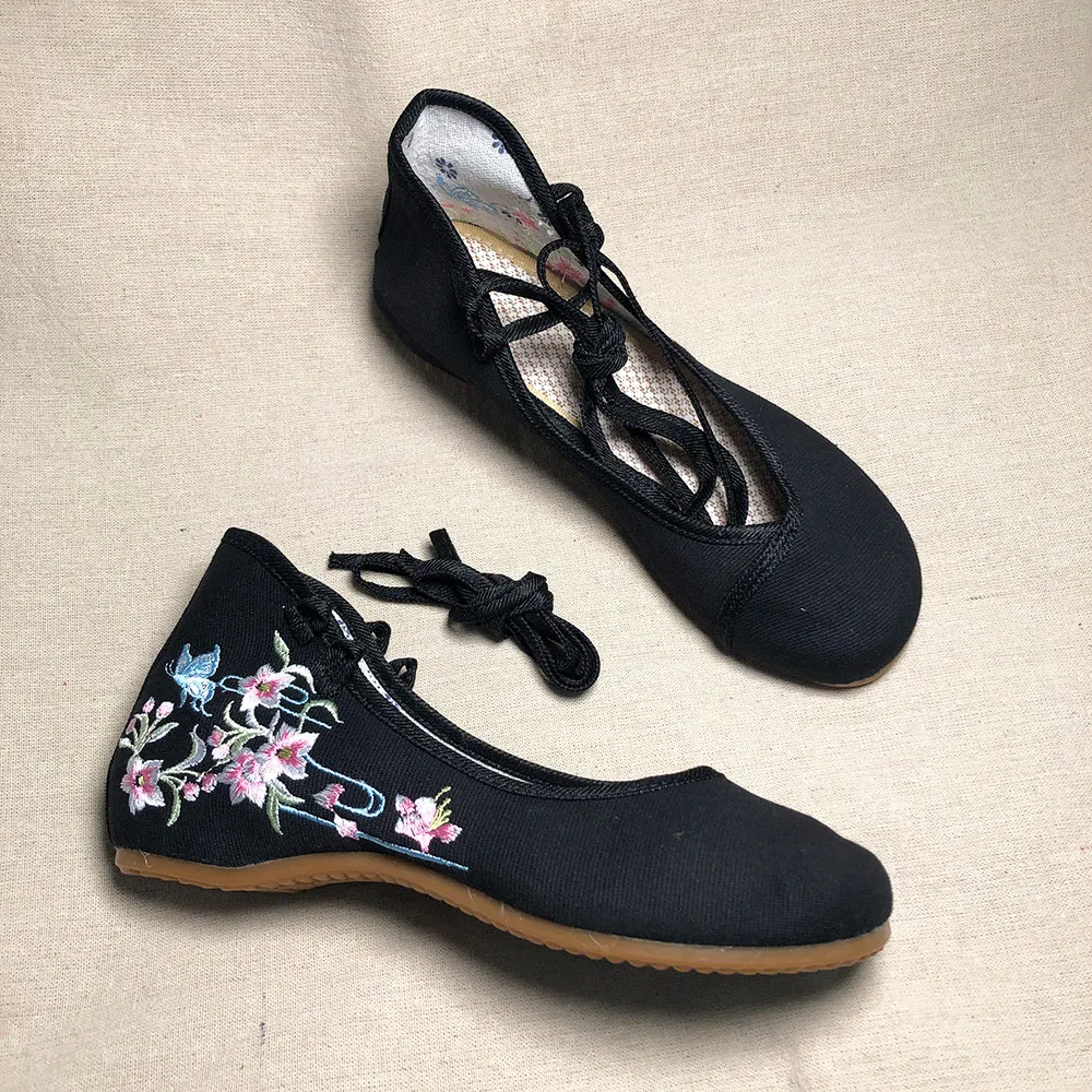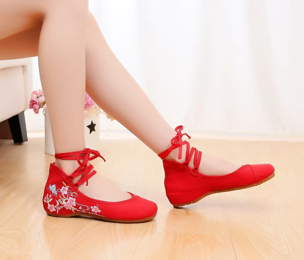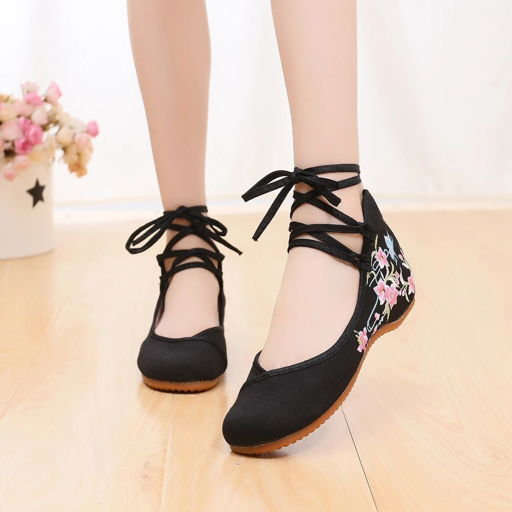Балетки женские Veowalk хлопковые, с ремешком на щиколотке, с вышивкой