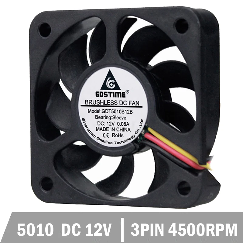 Вентилятор охлаждения Gdstime DC 5010, 50 шт., 50*50*10, 12 В, 3 контакта, с функцией FG, бесколлекторный, 50 мм, 5 см, 4500 обмин