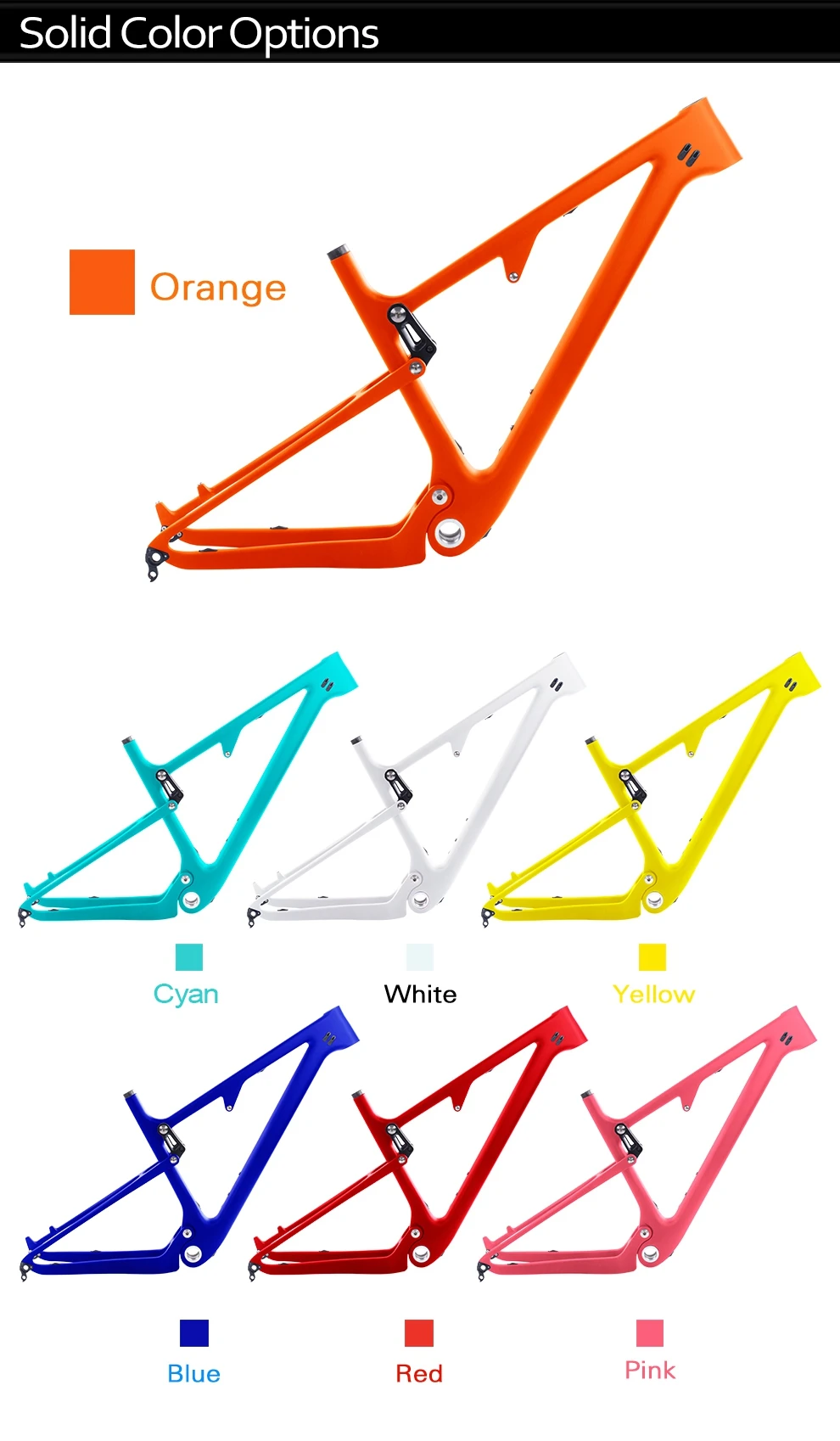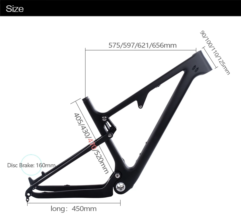 Тип оправы: карбоновая рамка полной Подвески XC cross country;Материал оправы: карбоновое волокно Toray T800;Подходит для гарнитуры: верхняя 1-1/8 (41,8 мм), Нижняя 1-1/2(52 мм);Подходит для каретки: вкручивающаяся BSA(46*73 мм);Подходит для дискового тормоза: 160 мм;Подходит для зажима сиденья: 34,9 мм;Подходит для подседельного штыря: 31,6 мм;Подходит для заднего амортизатора: 165*38 мм * 22 мм;Подходит для шин: обычная шина Max 2,3; Шина BOOST Max 2,35;Рекомендуемый рост: S "(160-170 см),M"(170-180 см),L "(180-190 см),XL"(190-200 см);Подходит для путешествий: 100-120 мм;148 подходит для концентратора: 148*12 мм;142or135 подходит для ступицы: 142*12 мм или 135*9 мм;Максимальная нагрузка: 200 кг;Линия тормоза и переключателя: Рама Внутренняя;Подходят для переключателя: Di2 и механические оба;142or135 расстояние сзади: 142*12 мм или 135*9 мм;148 расстояние сзади: 148*12 мм