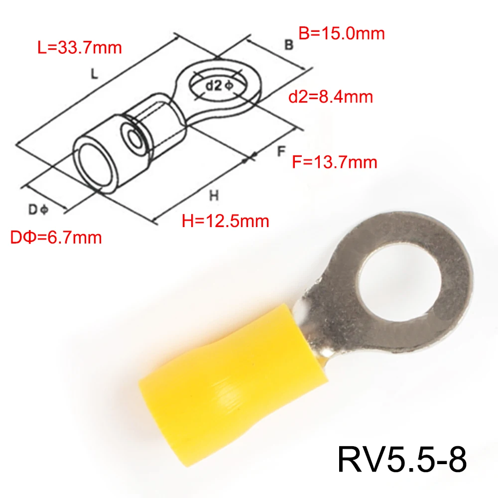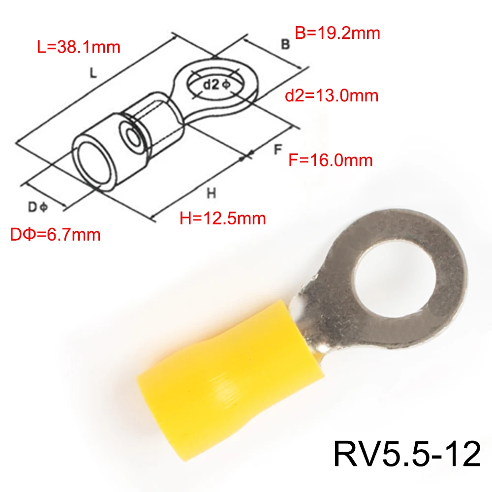 DIANQI RV5.5-4 5 6 желтый кольцевой изолированный клеммный кабель обжимной клеммный наконечник 4-6mm2 кабельный провод разъем 100 шт.упак.