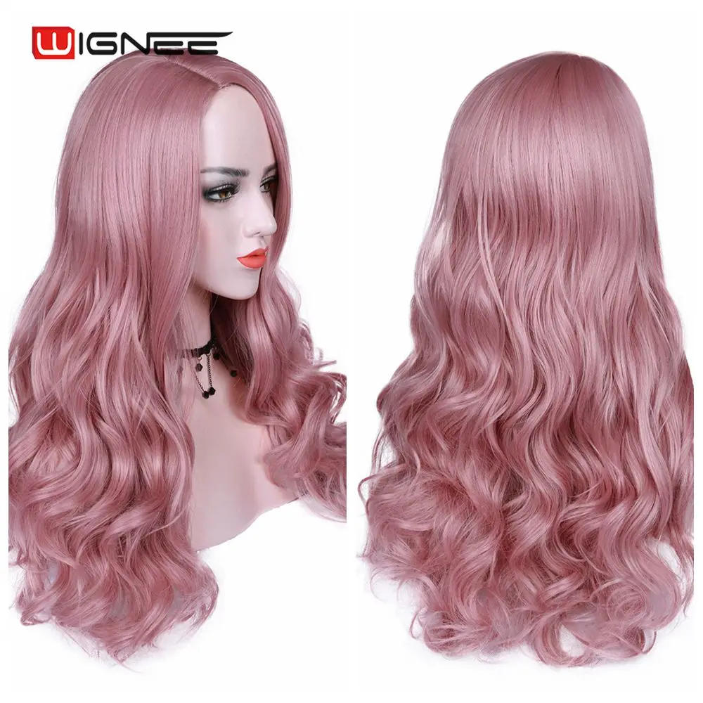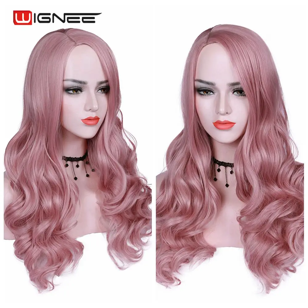 Wignee розовые волосы синтетический парик длинные волнистые парики термостойкие для женщин ежедневно вечерние натуральный от черного до коричневогофиолетовогоПепельный парик блонд