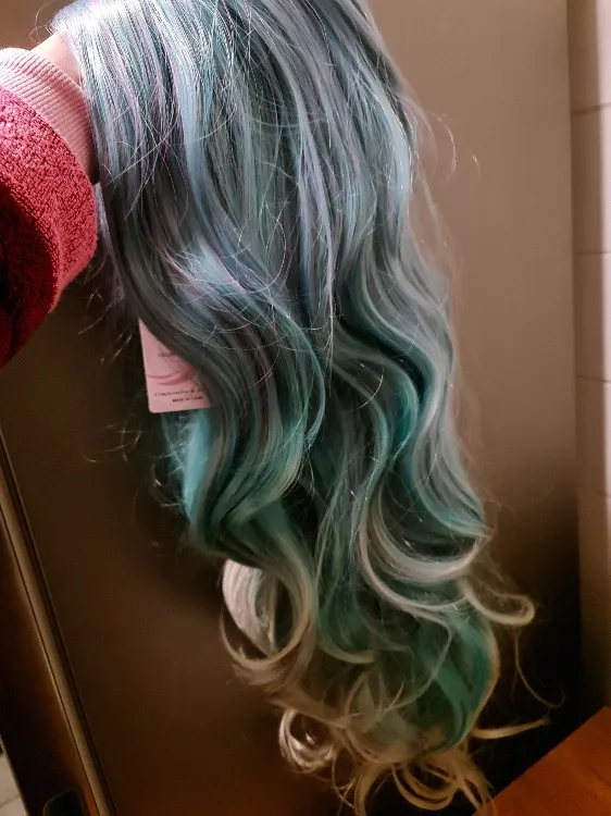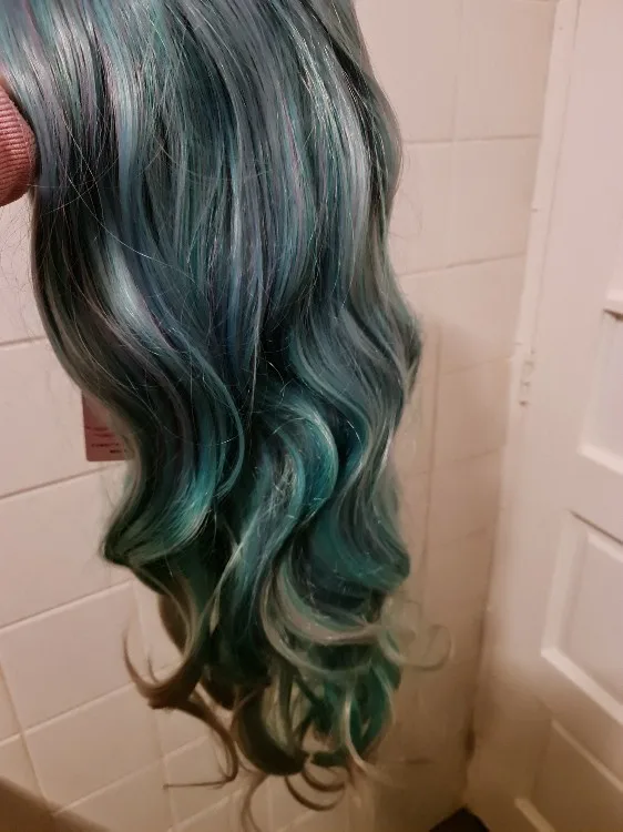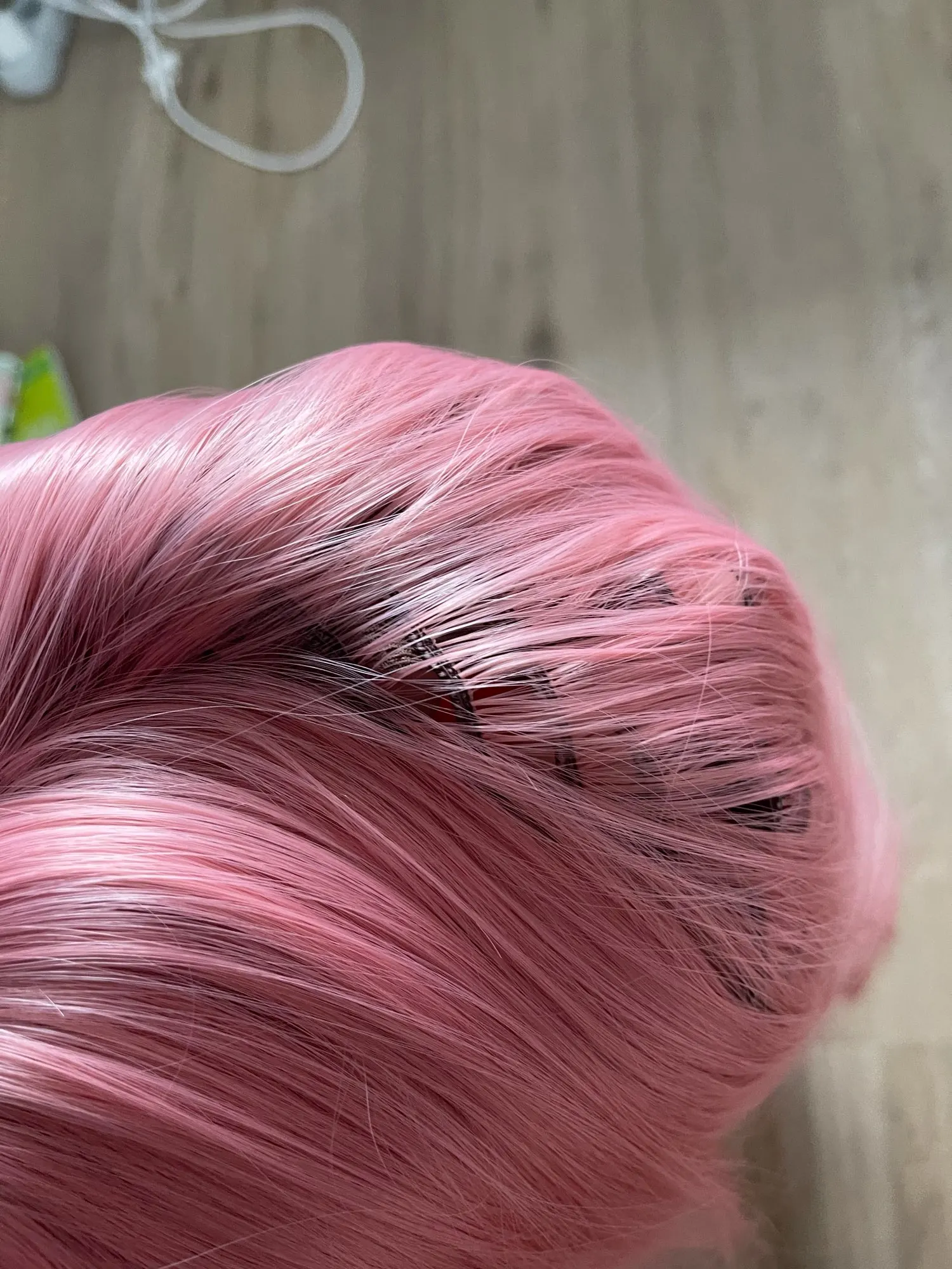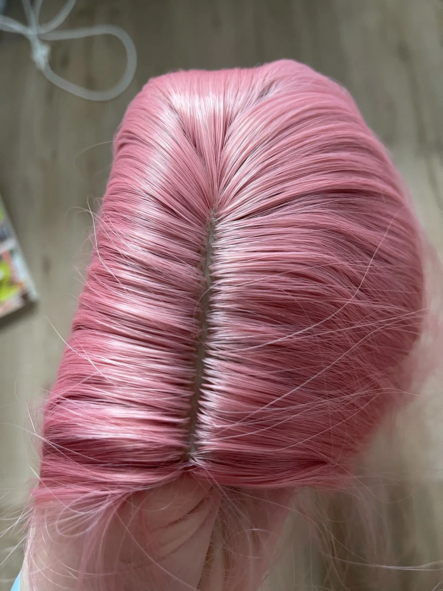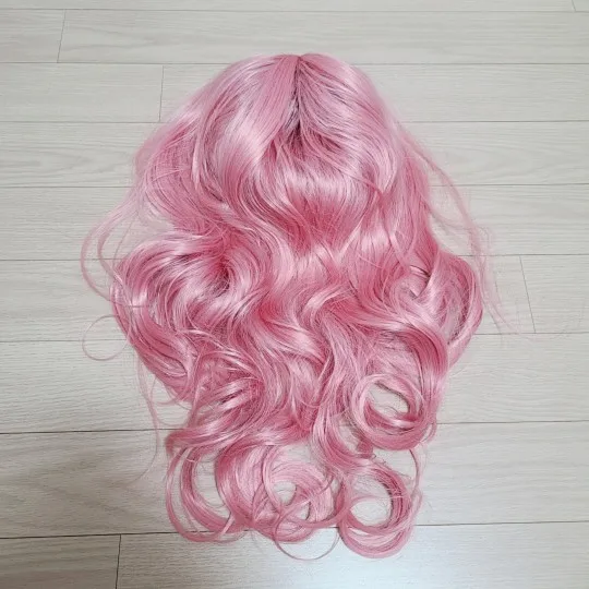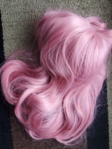 Это красивый парик, однако я лично буду считать его больше как парик на Хэллоуин. Хотя он не имеет поддельного блеска, он все еще выглядит очень пластичным, как волосы, которые вы найдете на куклы Барби. Смотрите фото при обычном освещении, без редактирования фотографий. Розовый парик на фотографии товара выглядит более естественно.