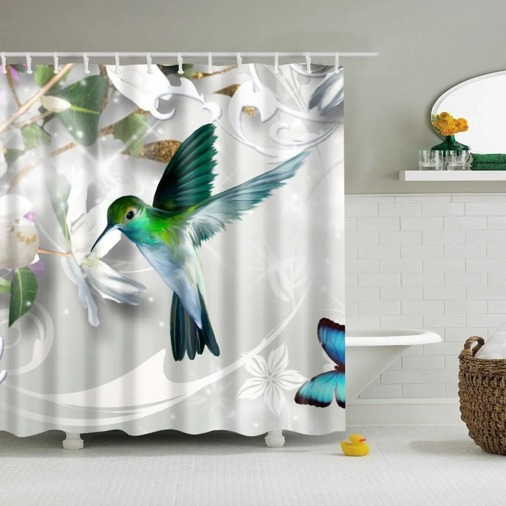 Декоративная занавеска для душа в ванную комнату с павлином, бабочкой, совой, птицей, водонепроницаемая занавеска для ванны из полиэстера с крючками