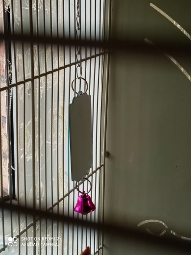 Todo bien. He quitado la campana, pero el espejo le encanta. Viene con un plastiquito que lo cubre. A mi pajaro le encanta, se pasa el día en frente de él