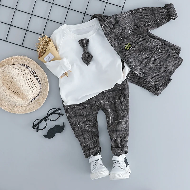 Детский костюм R Z, Новинка весна-осень 2019, клетчатый костюм для мальчиков, футболка, брюки, Британский костюм из трех предметов, костюм с платьем