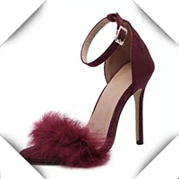 COVOYYAR/2019 Летняя обувь; Женские меховые тапочки на высоком тонком каблуке с перьями; Мюли с открытым носком женские туфли-лодочки; Обувь без шнуровки; Большие размеры WHH667