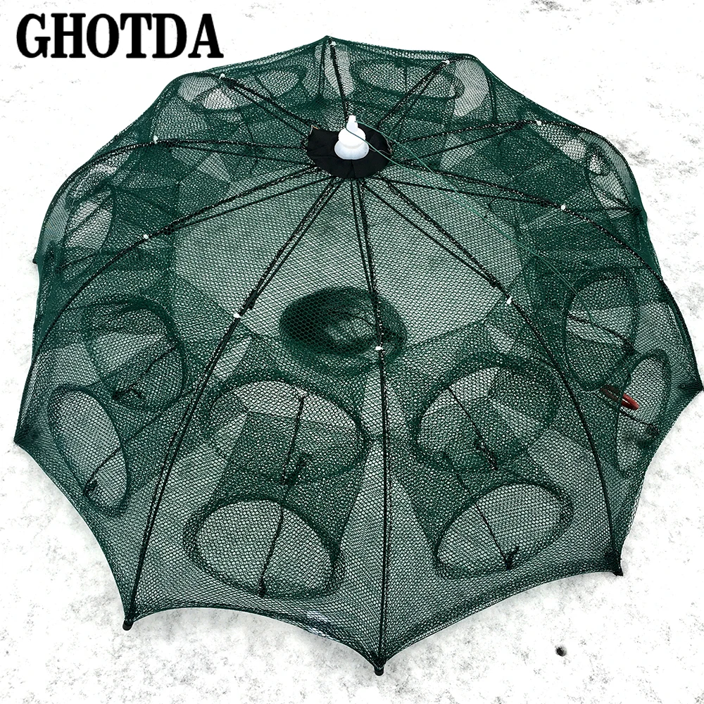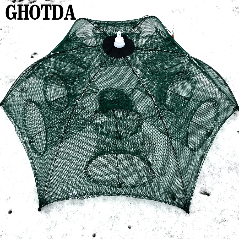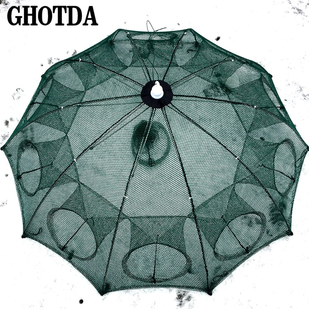 Автоматическая рыболовная сеть GHOTDA с 4-20 отверстиями, клетка для креветок, нейлоновая Складная ловушка для крабов