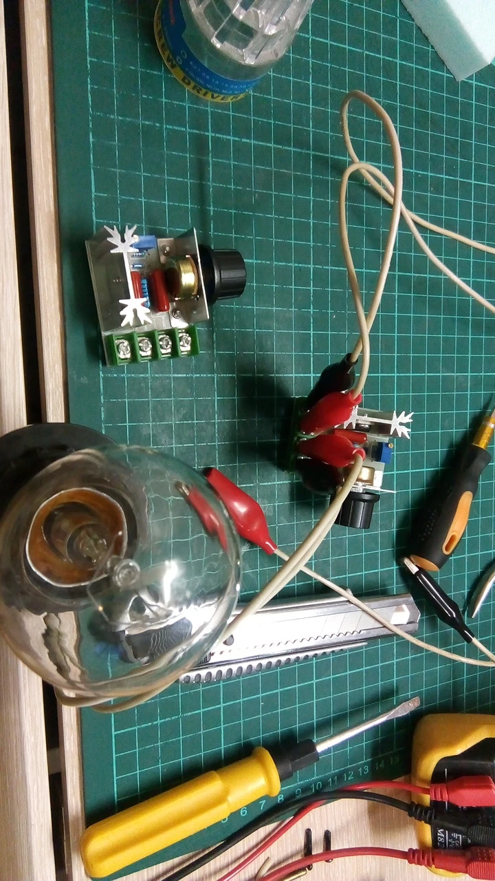 Упаковка хорошая. Работает от ~70 вольт. Регулировка плавная. Проверял на 100Вт лампочке. При понижении напряжения ощутимо дребезжит и издаёт неприятный "дзззззз". Покупал из-за 500кОм переменного сопротивления с ручкой. Семистор стоит на 16 ампер. Если не учитывать дребезг, то нормально за 2 бакса. А вообще такую штуку можно из подножного мусора собрать.