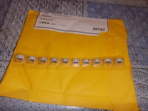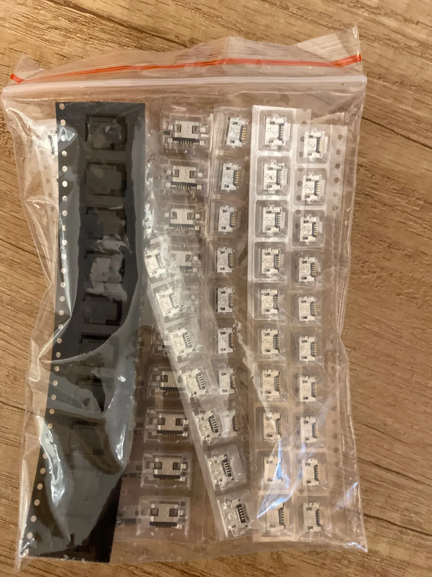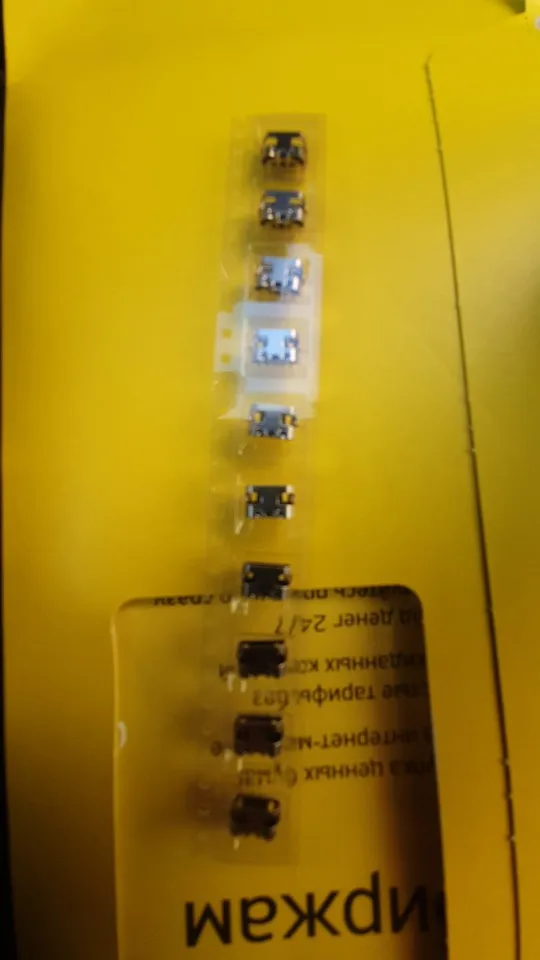 Полезный набор разъёмов микроюсб. Они отличаются количеством и геометрией крепежных ножек. Доставка почти 3 недели. Трек отслеживается. Рекомендую.