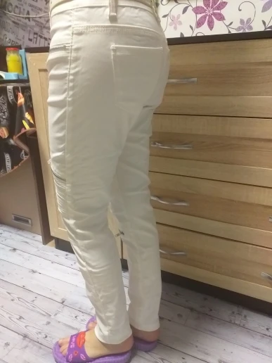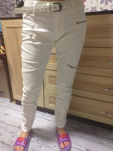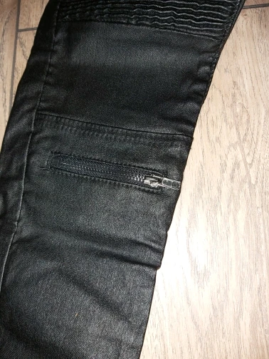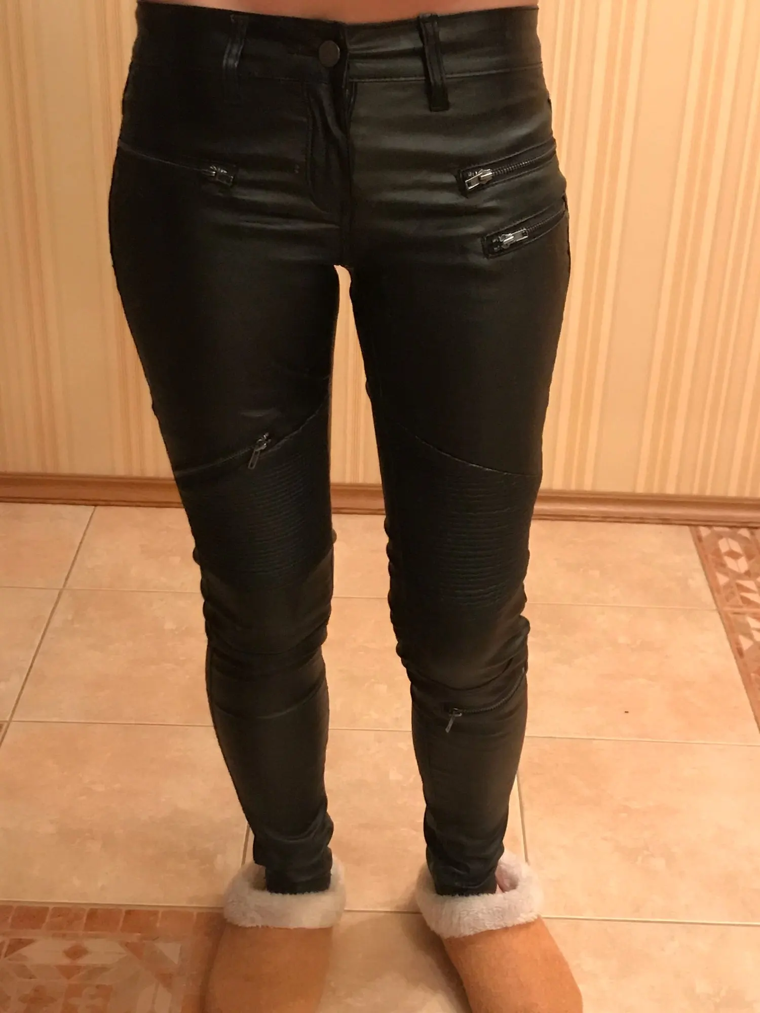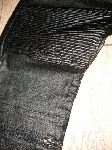 Хорошие брючки-скинни, талия низкая, нитки кое-где торчали, обрезала, ткань не искусственная кожа, в эдакая клеёнка, но более-менее дышит. Двигаться в них удобно. Доставились очень быстро. Претензий нет