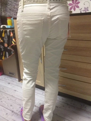 Заказ пришёл в СПб примерно за месяц. Российский размер ношу 40-42, заказала 36, оказались великоваты, но за счёт стрейча с ремнем будет нормально! Талия заниженная, штанцы классные!!