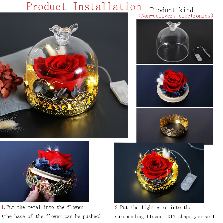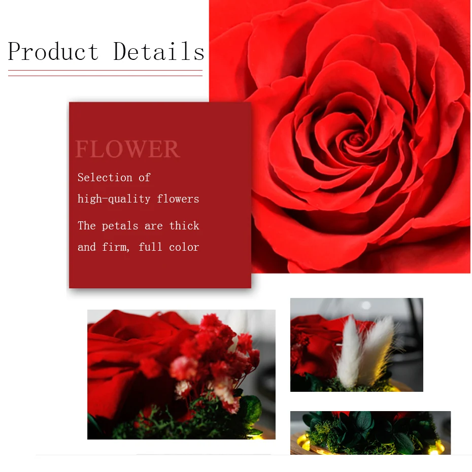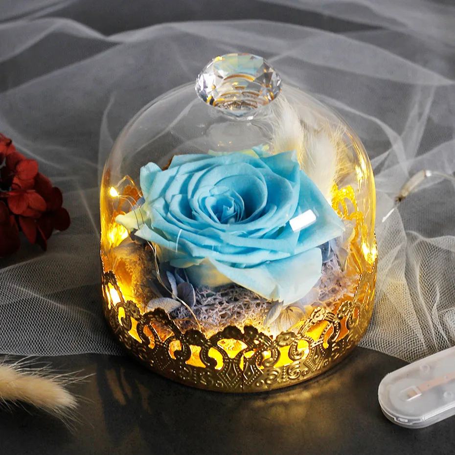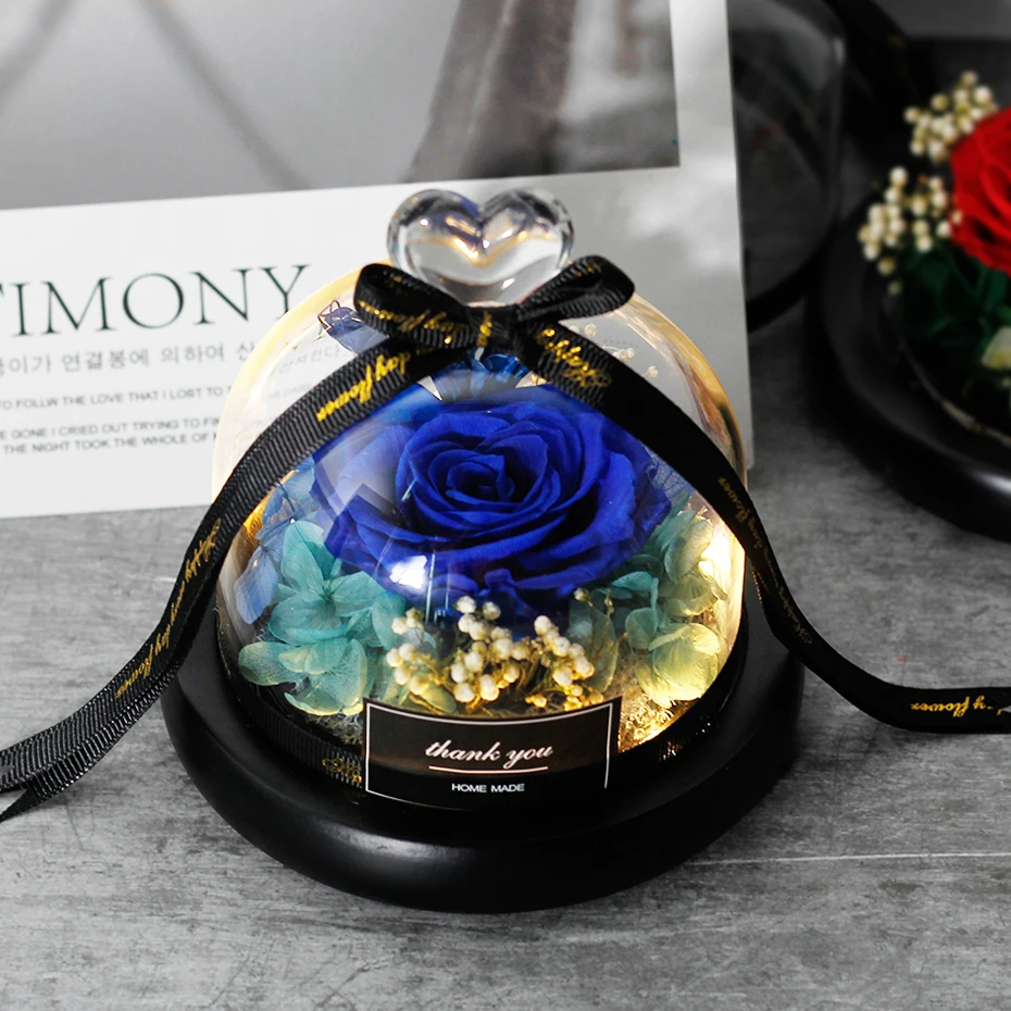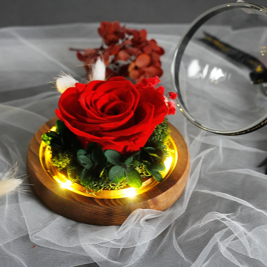 Эксклюзивная Роза в стеклянном куполе с подсветкой, настоящая вечная роза, Красавица и чудовище, подарок на день росевалентина