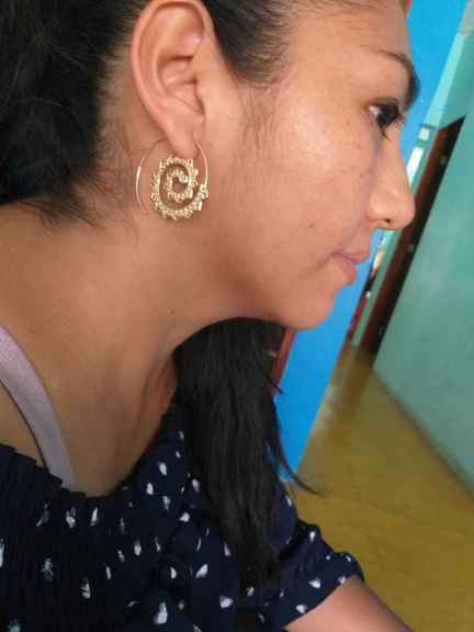Красивые серьги. Как в описании. Маленькая девочка закрывает ухо, потому что wysuwają снаружи.