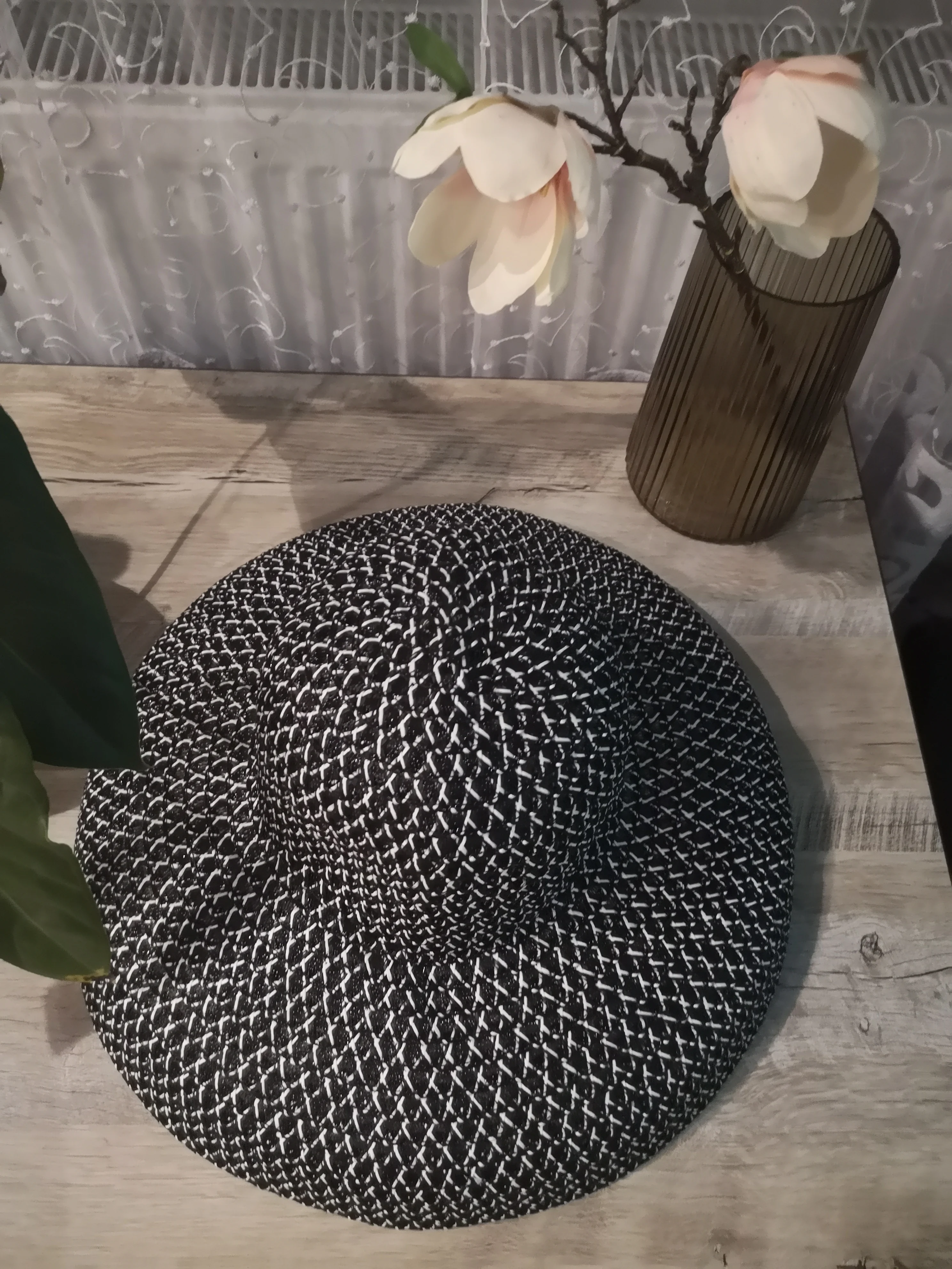 Шляпа от солнца, женская, черная и белая, винтажная, с Круглым Верхом, женская соломенная шляпа