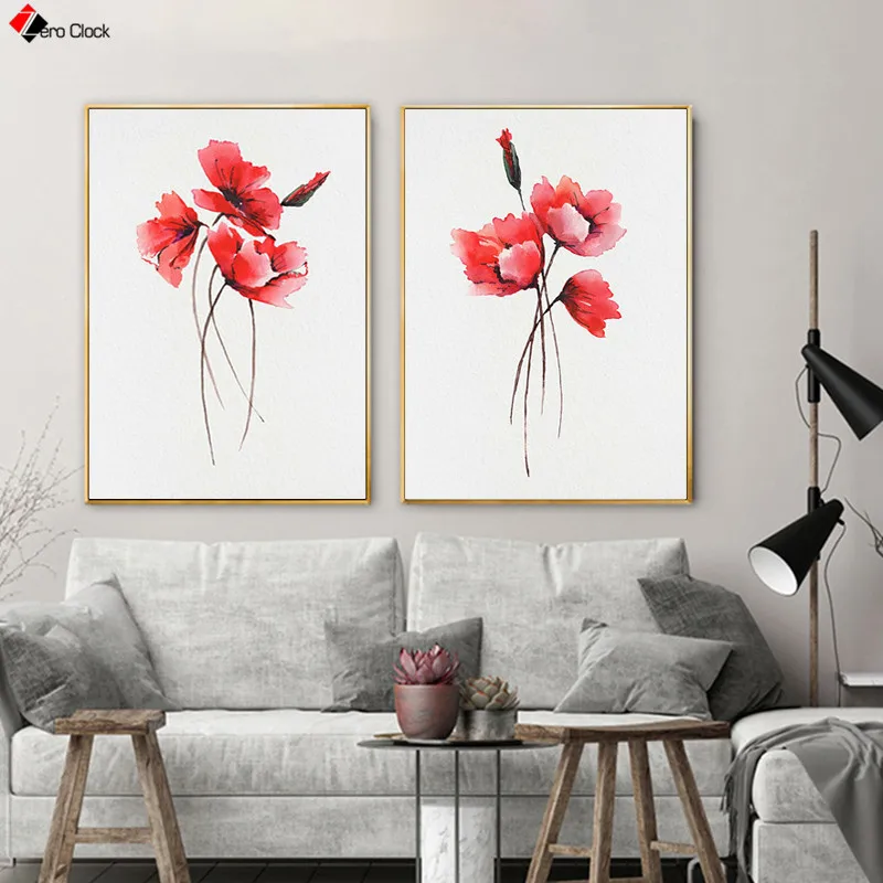 Красные маки Холст Картина абстрактный цветок настенные картины искусство Акварельная Художественная печать фотографии настенные декорации подарок для женщин