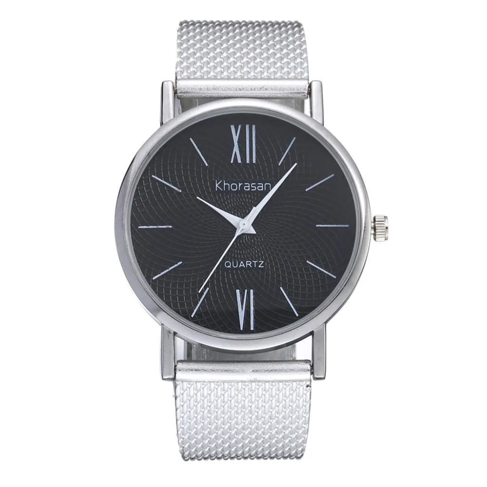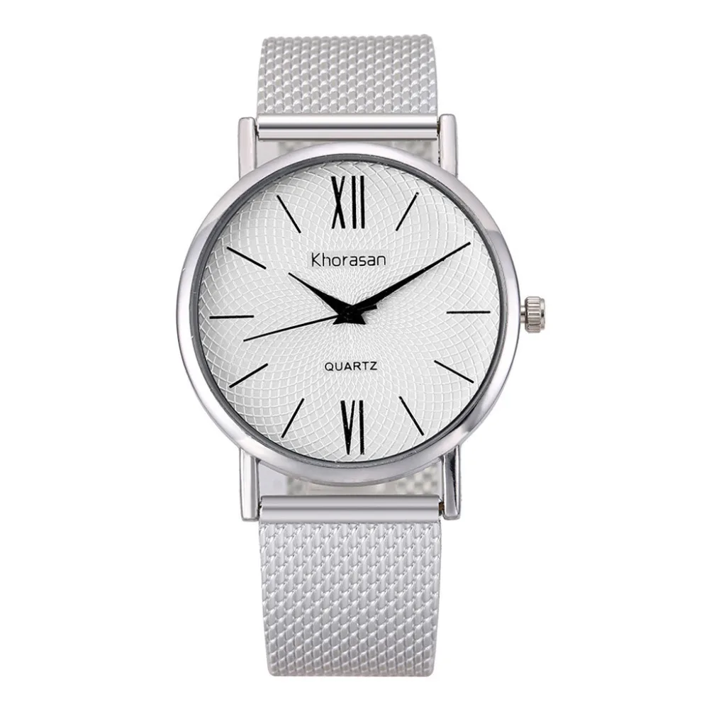 Часы женские, серебристые, кварцевые, с сетчатым ремешком