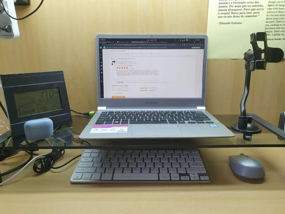 Продукт отличного качества и мастерства и очень сильный. Стекло имеет толщину 5 мм и очень хорошо упаковано. Был отправлен тот же (guaratingueta/SP), что позволяет избежать сборов. Но купил версию с «I power adapter», и он пришел. Только стол с usb-концентратором, кабелем питания (который будет прикреплен там) и usb-кабелем для подключения к концентратору (по крайней мере, это работает без питания). Стол очень широкий, очень красивый, подходит для цели, почти может войти руками под ним. Экономит настольное пространство и входы USB ноутбука, который имеет много. Доставка светодиодов 14 дней. Светодиод 4 дня для отправки. Просто не ставьте 5 звезд таким же, потому что подошло зарядное устройство для подключения.