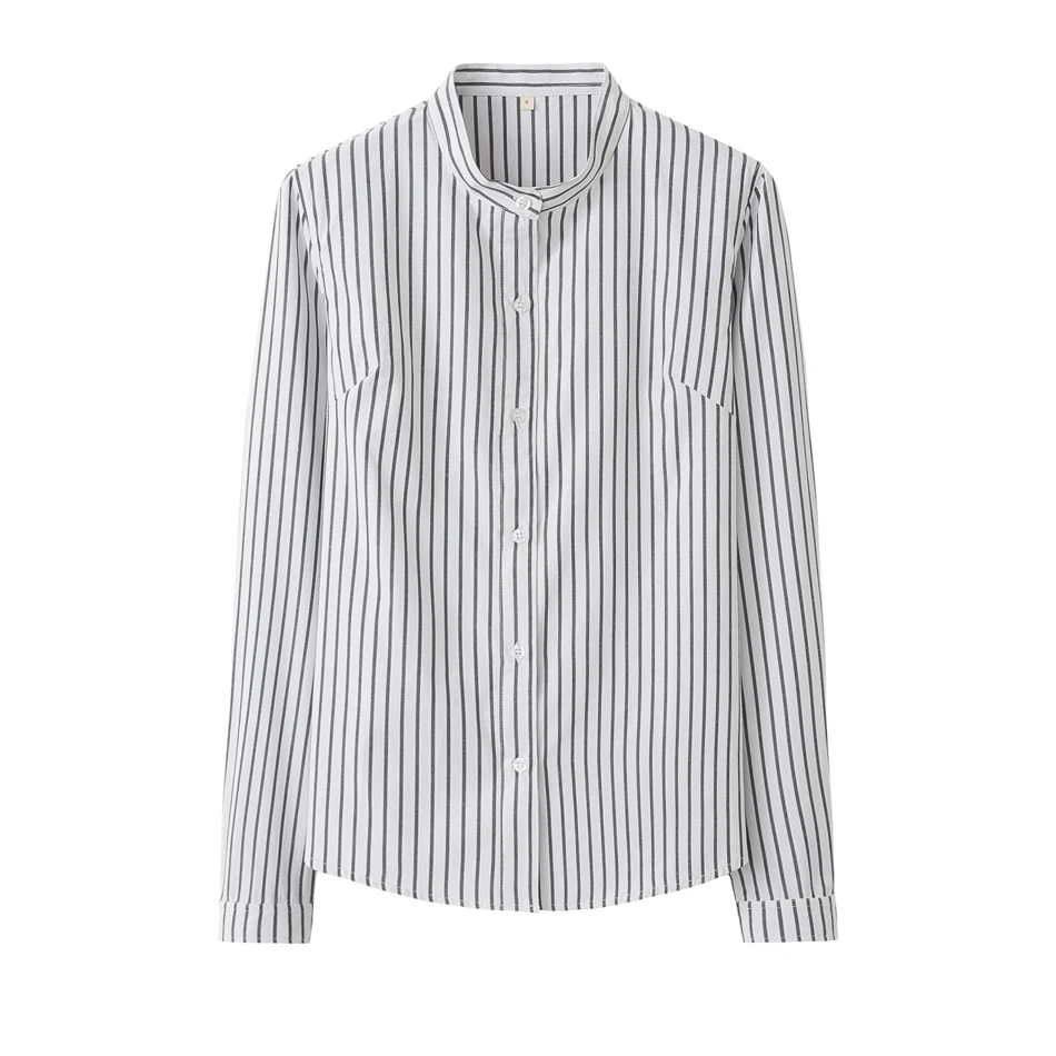 EYM брендовая полосатая блузка для женщин, новинка 2021, модная размера плюс, женские рубашки с длинным рукавом, дамские блузки-стойки, синие белые полосатые топы