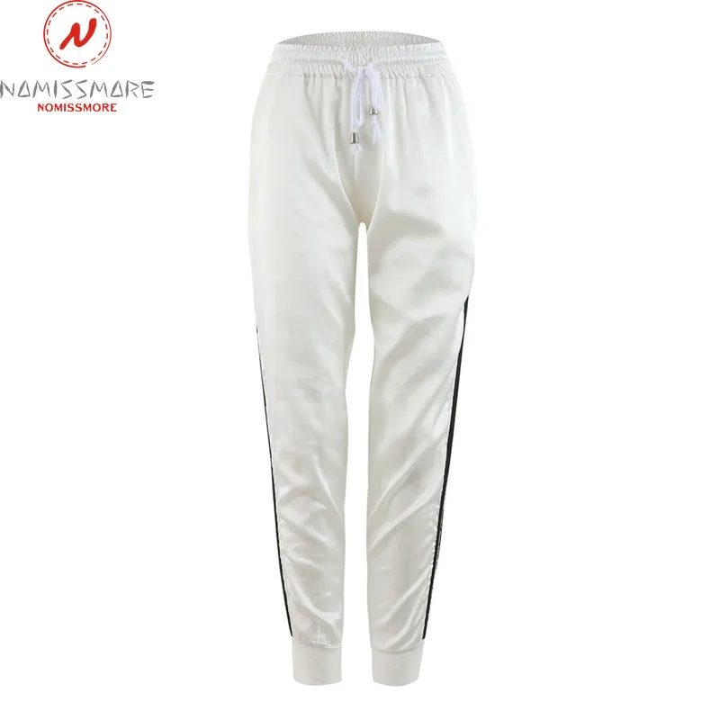 Женские спортивные брюки, Сексуальные облегающие брюки с завязками на талии, контрастными боковыми вставками, Брюки с карманами для весны и лета