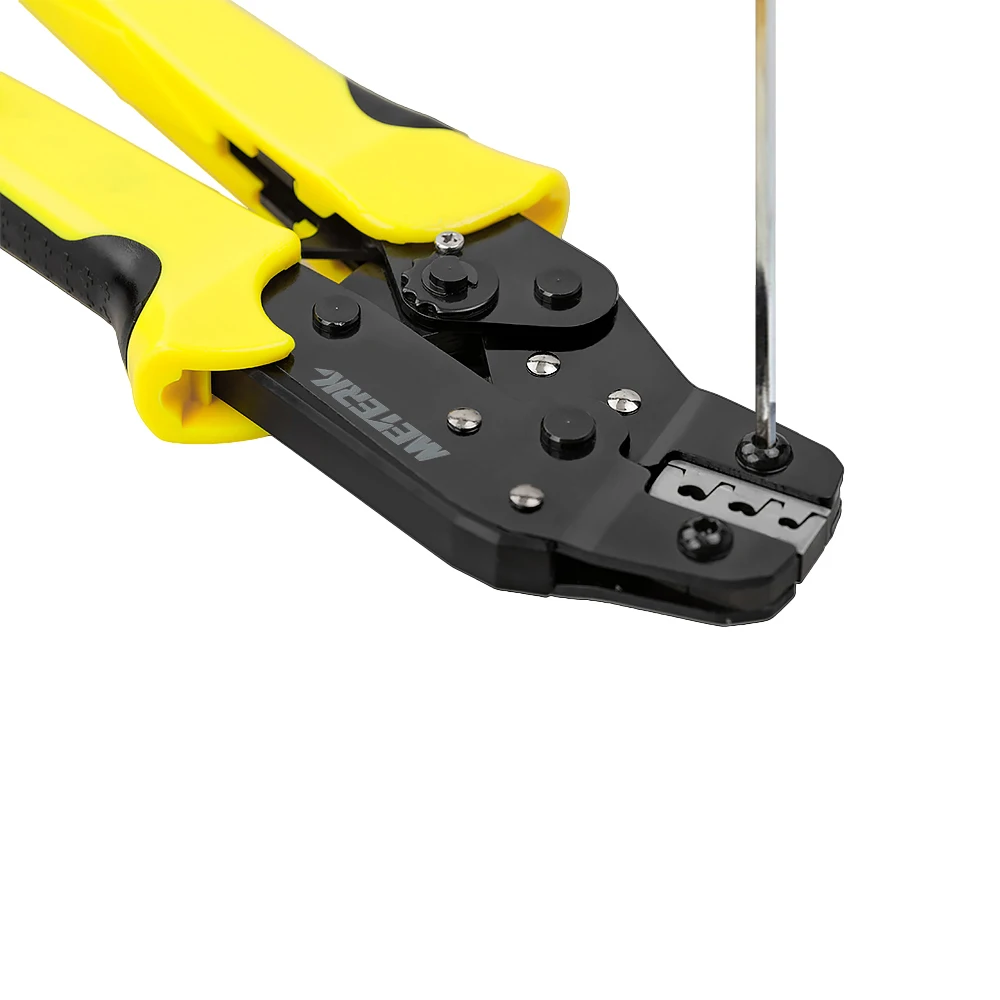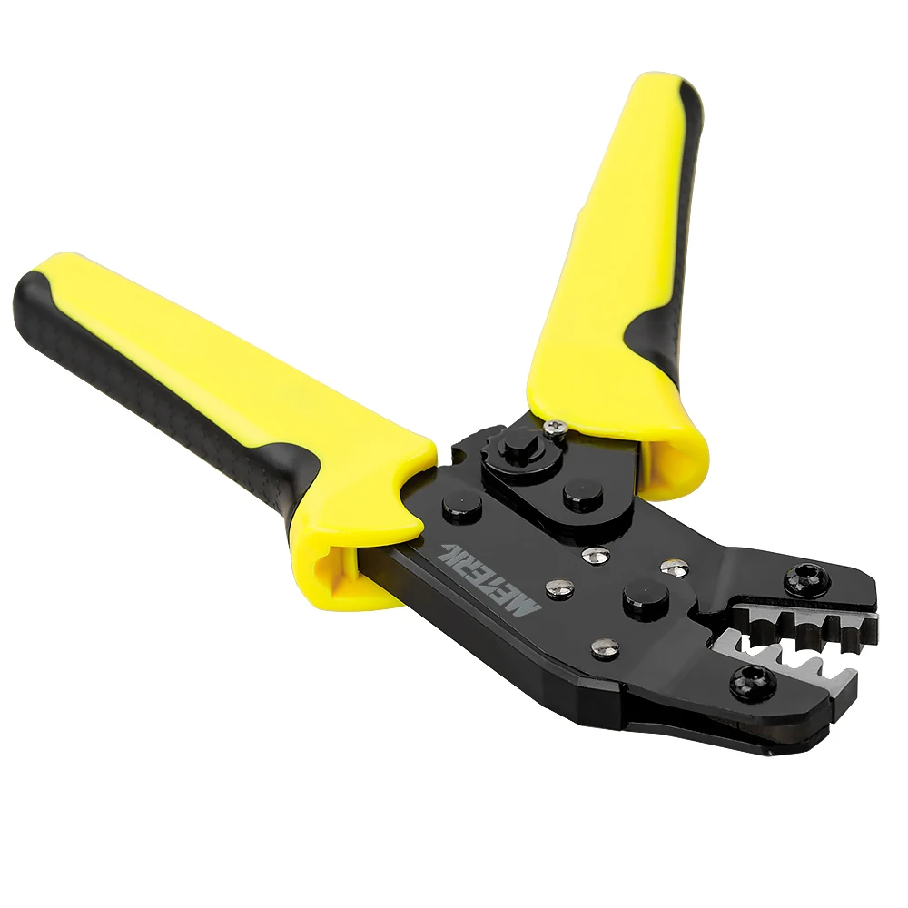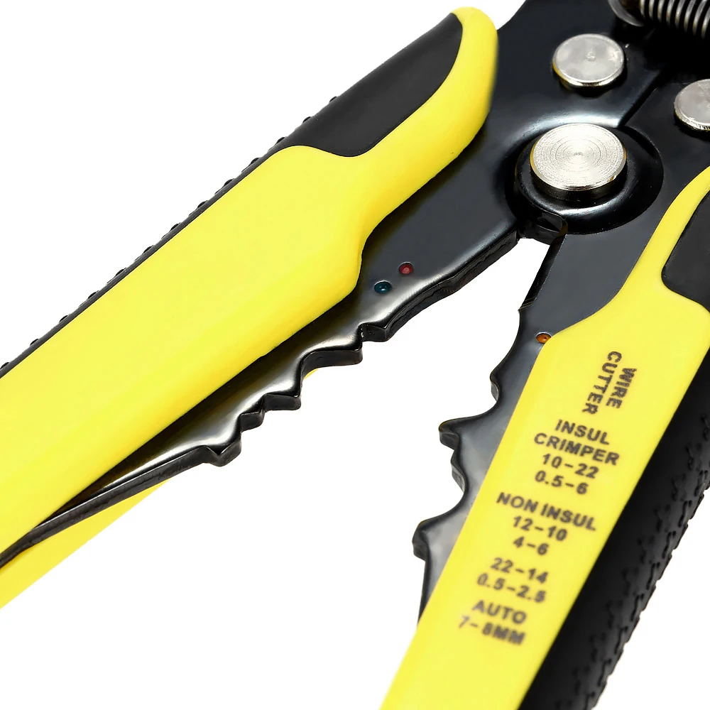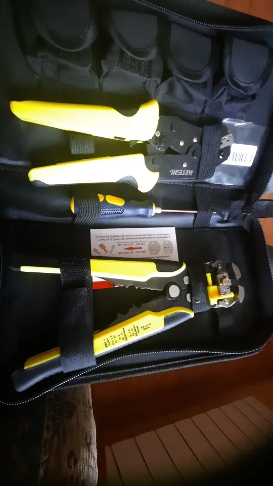 Эти профессиональные и практичные обжимные инструменты с саморегулируемыми обжимными плоскогубцами обеспечивают удобство, эффективность и безвредность сердечников кабеля. Он прост в использовании, просто удерживайте ручку и управляйте ею один раз, чтобы успешно нажать плотно прилегающие провода и клеммные блоки. Особенности:Благодаря большому захвату ручки, легкая и компактная конструкция и конструкция ручки обеспечивают идеальный эффект обжима.Профессиональный инструмент для обжима проволоки с саморегулируемым механизмом храповика и зачистки проводов, для удобства эксплуатации.Подходит для большинства неизолированных обжимных терминалов и разъемов.С 4 взаимозаменяемыми клеммами с различными диапазонами обжима.Мульти-функциональный провод для зачистки для разъемов от 24 до 10AWG (0,2-6.0mm ²).Разработан в соответствии с инженерными факторами человека, он может экономить 50% энергии при обжиме. Характеристики:Название бренда: MeterkМодель: JX-D4301Материал: Высокоуглеродистая сталь + сплавЦвет: желтый + черныйПодходящие клеммы и Диапазон обжима проводов:1. Цветовые кодовые гнезда + изолированные клеммы 24-14 AWG (0,25-2.5mm ²), холоскоп: 0,25, 1,5, 2,5;2. Конец шнура терминалы 24-10 AWG (0,25-6.0mm ²);3. Неизолированный открытый Цилиндрический разъем 26-16 AWG (0,14-1,5 мм ²);4. MC4 солнечной разъем клеммы 14-10 AWG (2,5-6.0mm ²).Диапазон зачистки проводов стриптизерша: 24-10 AWG (0,2-6.0mm ²)Размер проволоки: прибл. 19*8*2,0 см/7,48*3,15 * 0.79inВес щипцы для проволоки: прибл. 348,5 г/12,29 унцийРазмер зачистки проводов: прибл. 21*10,5*2,8 см/8,27*4,13*1,10 дюймовВес зачистки проводов: прибл. 316 г/11,15 унцийРазмер посылка: прибл. 28*14,5*6 см/11,02*5,71 * 2.36inВес посылка: прибл. 1033 г/36,44 унций Посылка:1 * щипцы для проволоки1 * S2 отвертка1 * сумка для хранения3 * Запасные штампы4 * винты