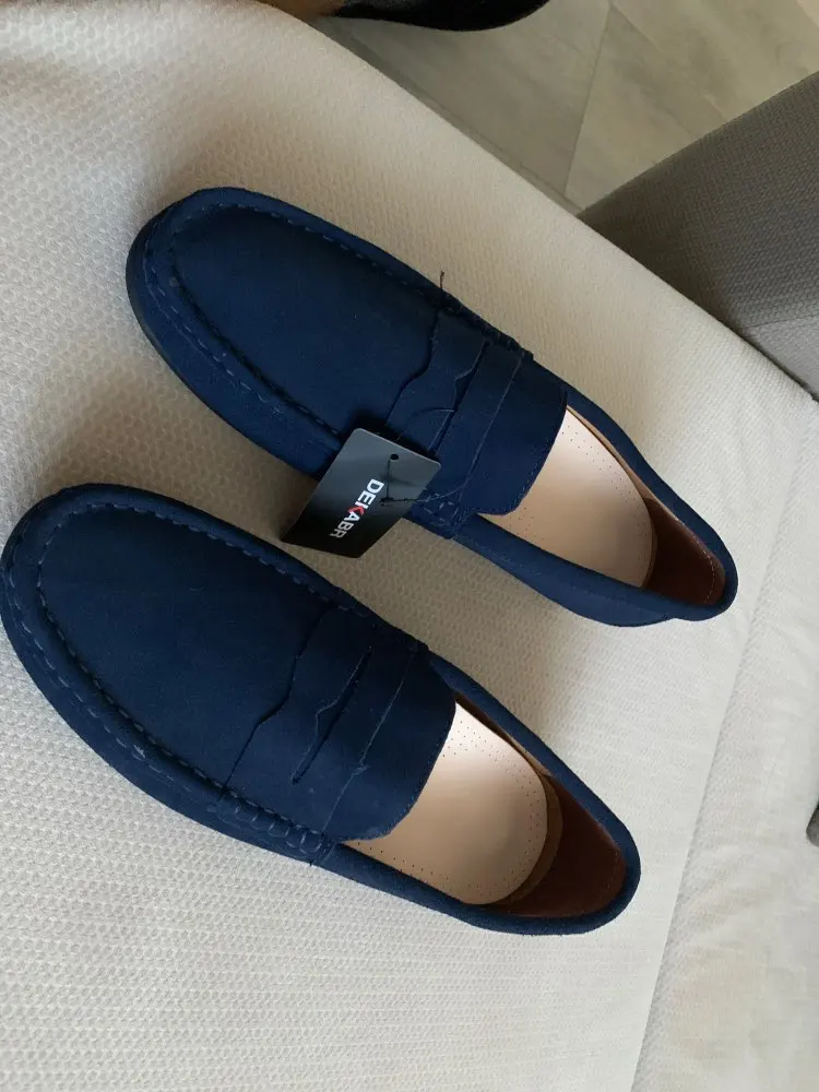 Мужские брендовые мокасины на весну-лето DEKABR, темно-синие туфли из натуральной кожи, легкая обувь на плоской подошве для вождения