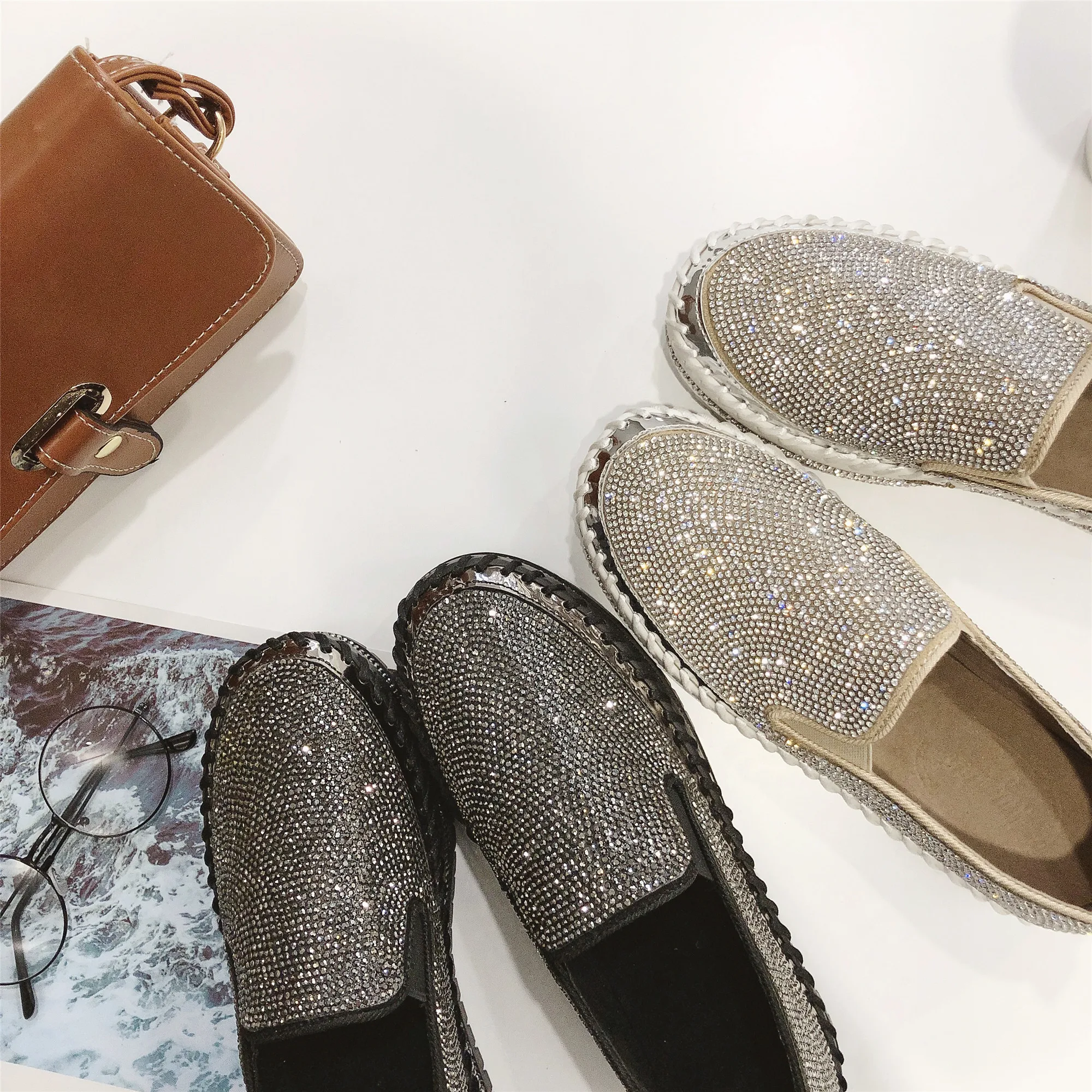 Женские туфли на плоской подошве, с блестками, со стразами, весна-о...