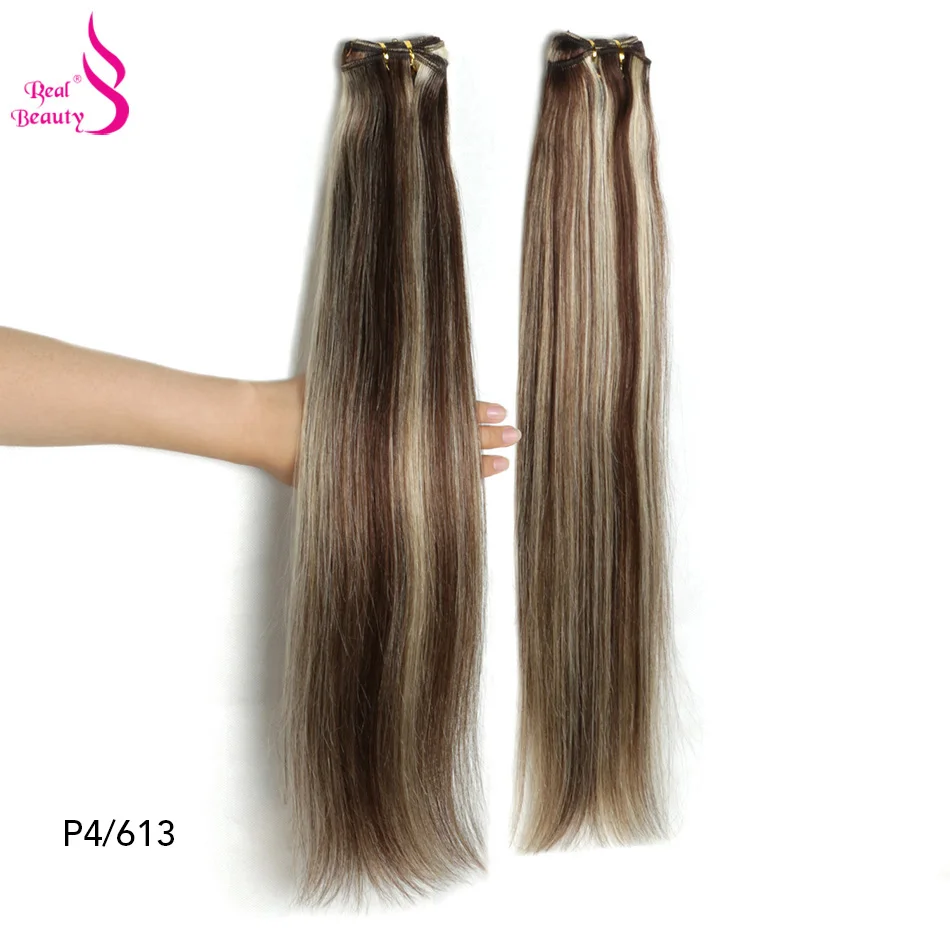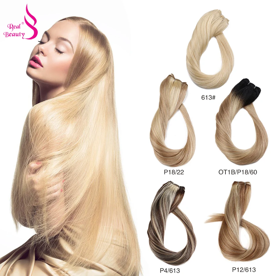 RealBeauty балаяж наращивание волос бразильские прямые человеческие волосы пучки двойной уток Реми Омбрекоричневыймедовый светлыйскандинавский цвет