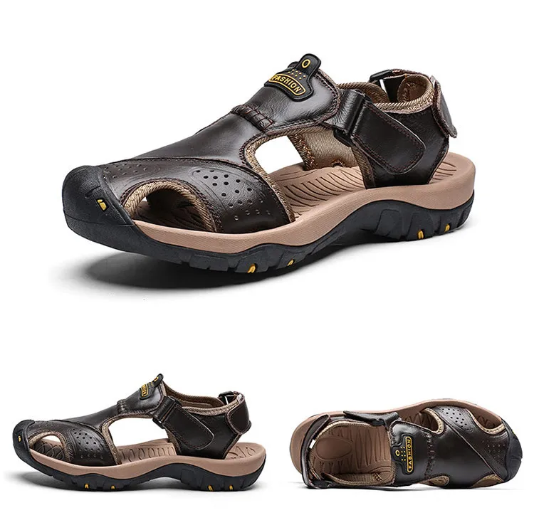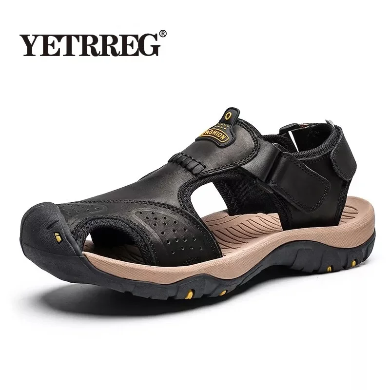 Мужские сандалии из натуральной кожи, летние пляжные сандалии, модные уличные повседневные кроссовки, размеры 38-46, 2019