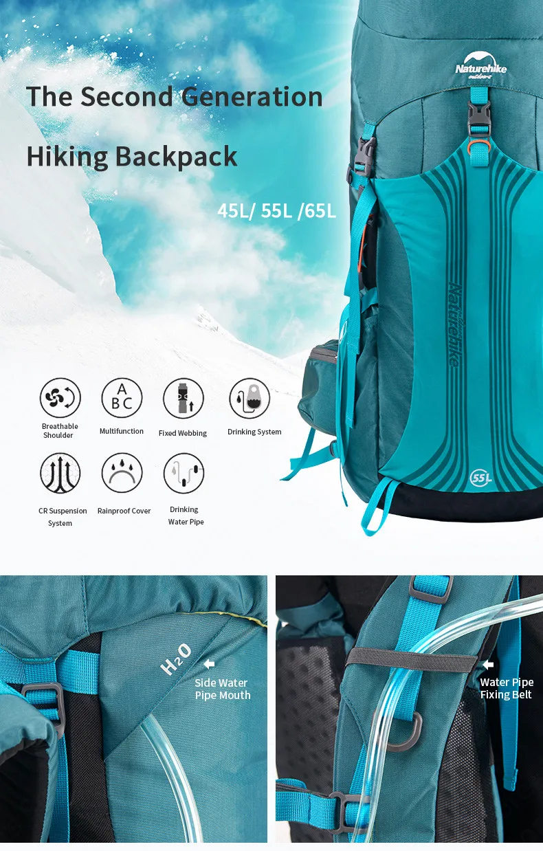 Рюкзак для походов, кемпинга, альпинизма, с системой подвески, 55 л, 65 л, BagNH16Y065-Q