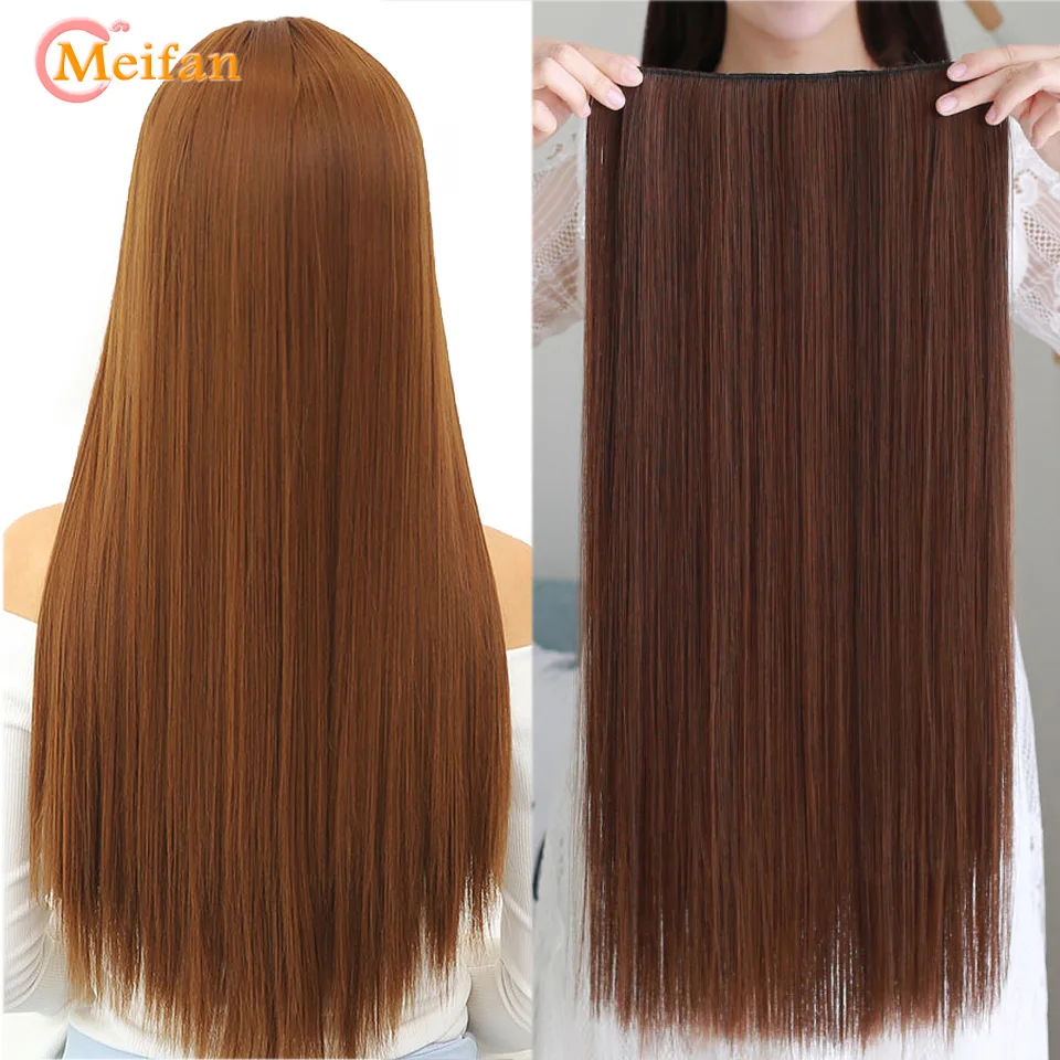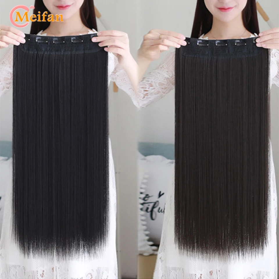 Накладные прямые волосы meifan100 см, на 5 заколках, термостойкие, черные, коричневые