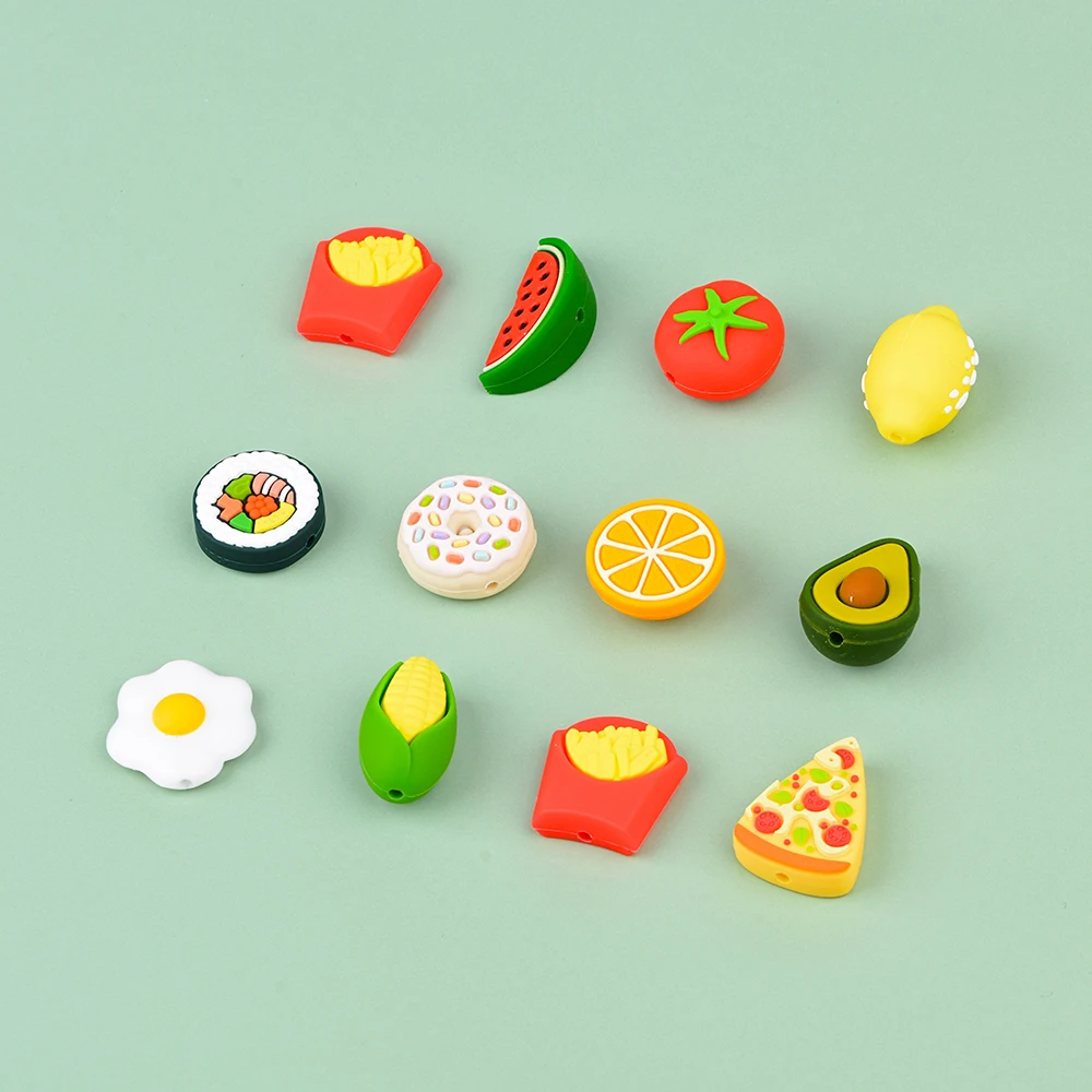 Силиконовые бусины в виде животных, 10 шт., пищевой, лимонный прорезыватель, без БФА, единорог, детская игрушка для прорезывания зубов, цепочка, аксессуары, фруктовая серия