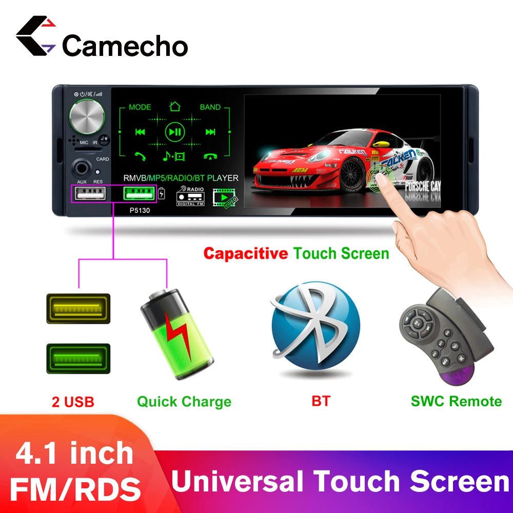 Автомагнитола Camecho, 4,1 дюйма, 1 Din, Bluetooth, сенсорный экран, радио, RDS, USB, AUX, MP5, видеоплеер, MP3, автомобильное аудио, стерео, камера заднего вида