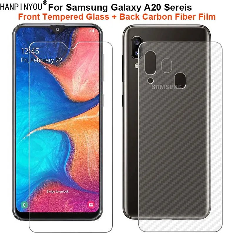 1 комплект = мягкая задняя углепластиковая пленка + прозрачное закаленное стекло премиум-класса для Samsung Galaxy A20 A20e A20s