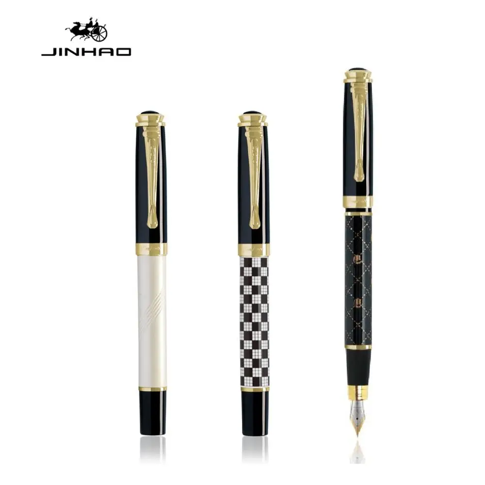 Роскошная ручка с чернильными чернилами венеции, с узором в клетку, с белой и золотой отделкой, с тонким наконечником Jinhao 500, офисные принадлежности для финансов, школьные принадлежности F489