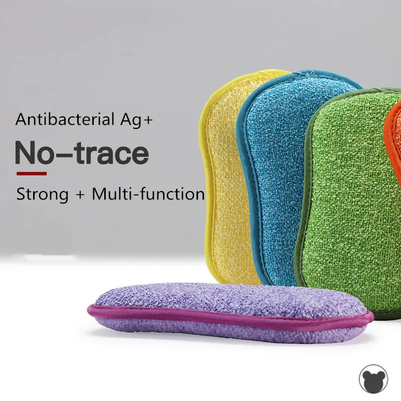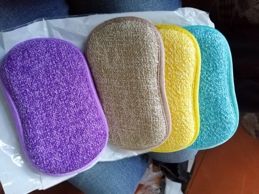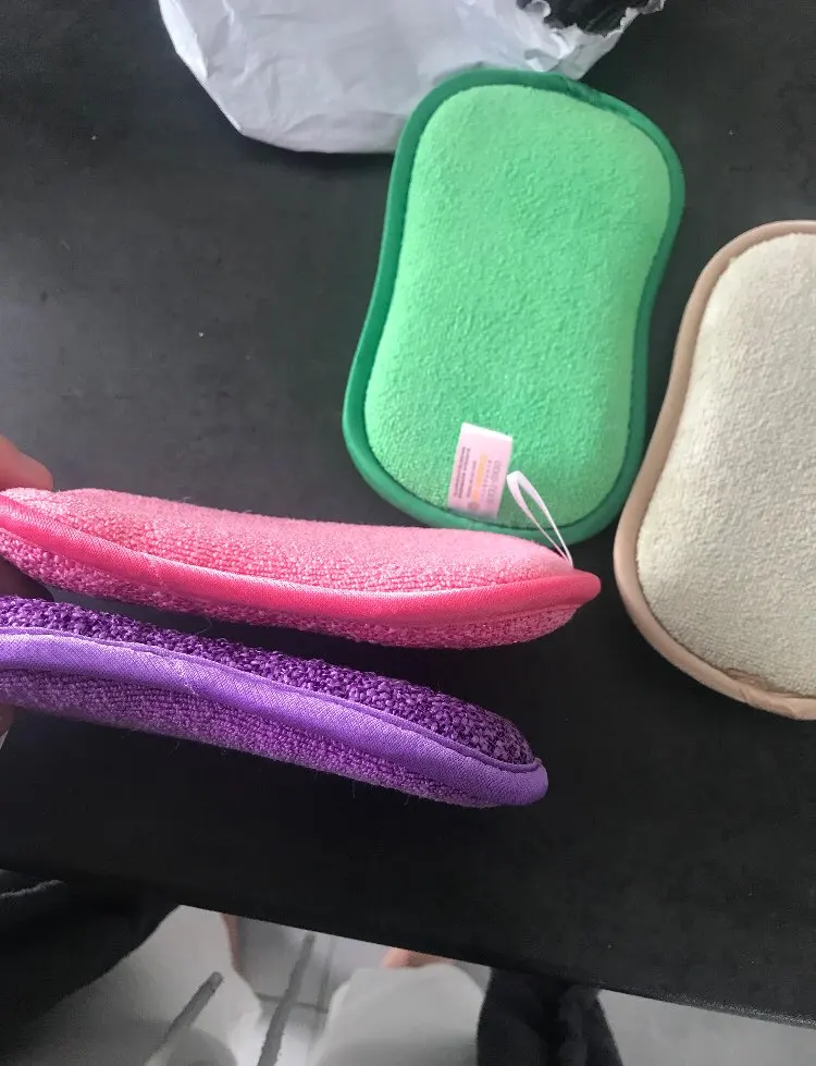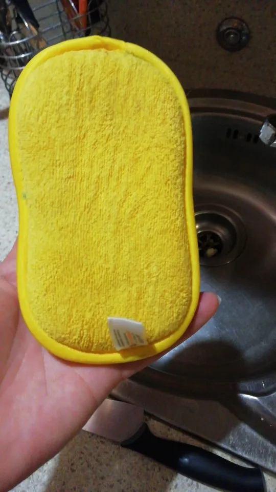 Губки очень крутые, моют без моющего средства, посуда скрипит. Одна сторона из микрофибры, а другая жёсткая, ей отлично отмывать застарелую грязь.