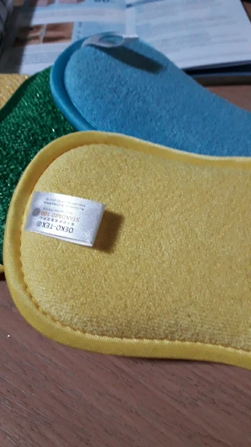 классные губки.аккуратно сшиты,нигде ничего не торчит,запаха не было. на сильных загрязнениям ещё не пробовала,а в целом посуду отлично моют. будем тестировать дальше