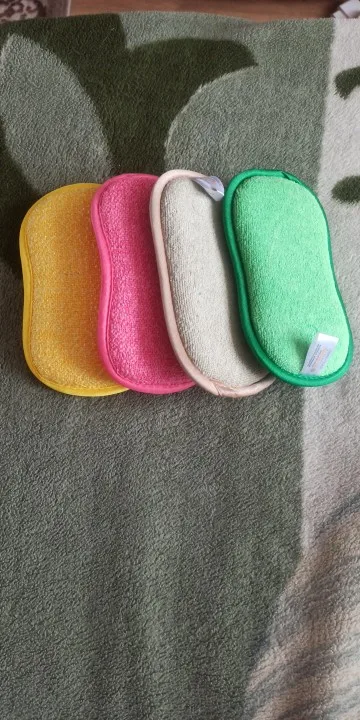 Прислали 4 губки для посуды разных цветов. Спасибо продавцу и магазину!