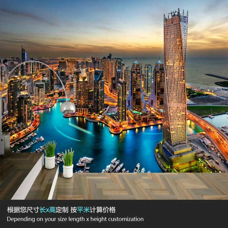 Дубай город ночная сцена 3D фото настенная бумага s для стен 3D Ресторан Бар Кафе промышленный Декор настенная бумага настенное покрытие 3D