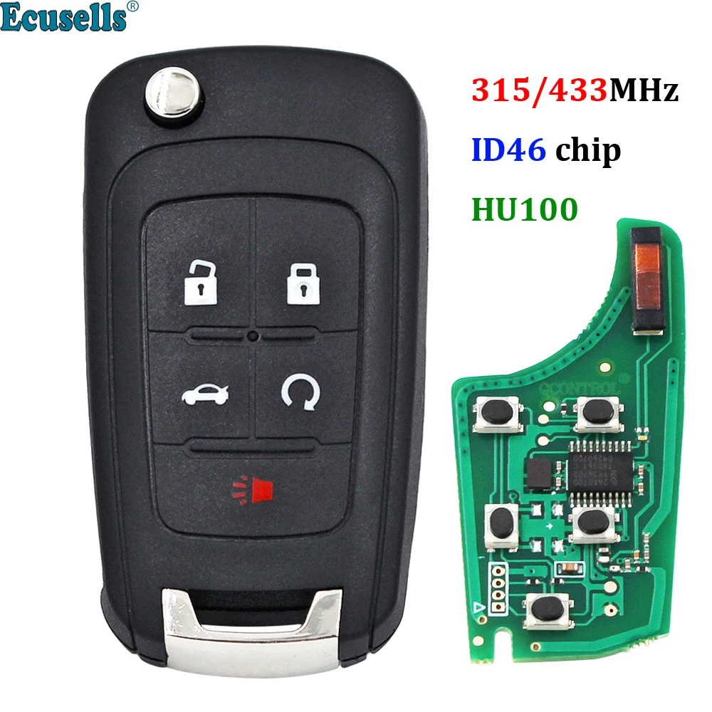 4 + 15 кнопочный дистанционный ключ 315 МГц 433 МГц с чипом ID46 для Chevrolet Impala Equinox Cruze Sonic Malibu Camaro HU100 uncut