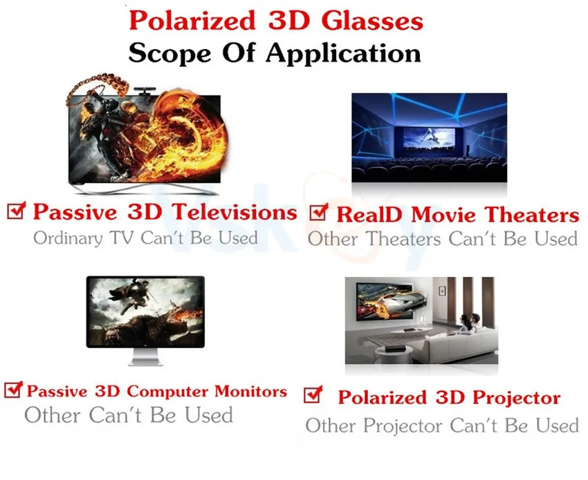 3D Glasses UsagePassive SONY, Panasonic, Vizio, Toshiba, LG, Phlips, JVC TVs