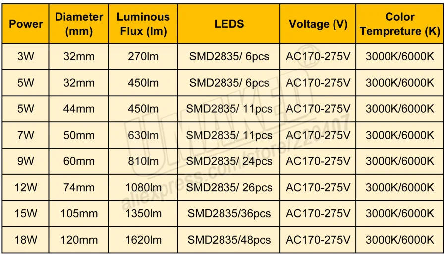 Светодиодный Светильник направленного света smd2835, интегрированный Драйвер IC, 7 Вт, 50 мм, переменный ток 220 В, 18 Вт, 15 Вт, 12 Вт, 9 Вт, 7 Вт, 5 Вт, 3 Вт для нижсветильник света сделай сам