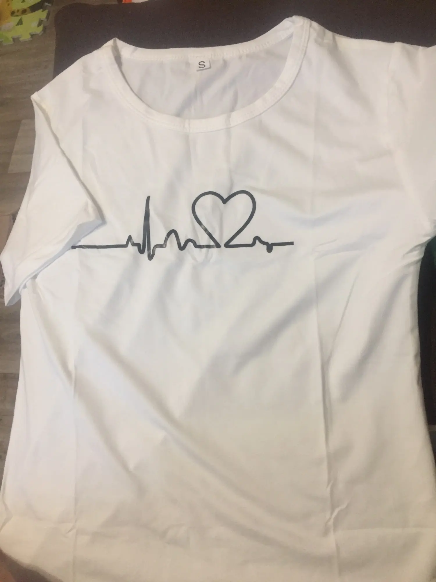 Женская футболка с вышивкой, летняя черно-белая футболка с изображением сердцебиения