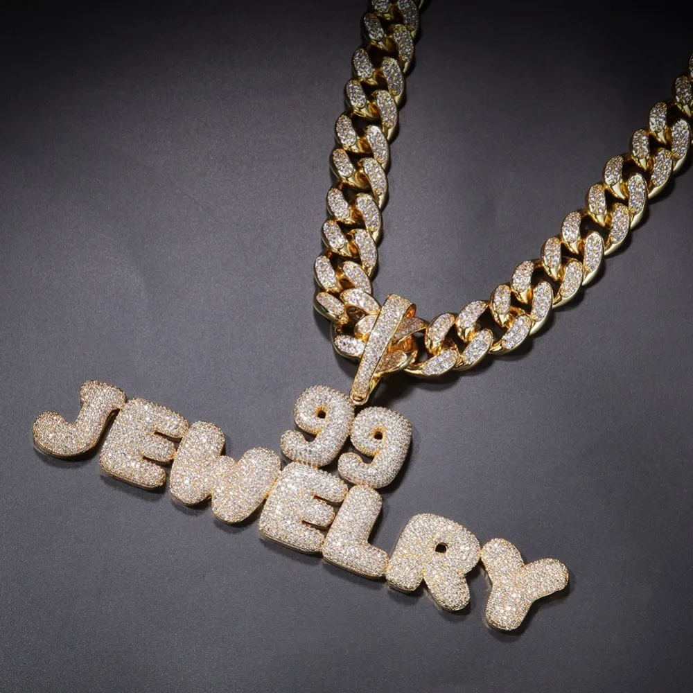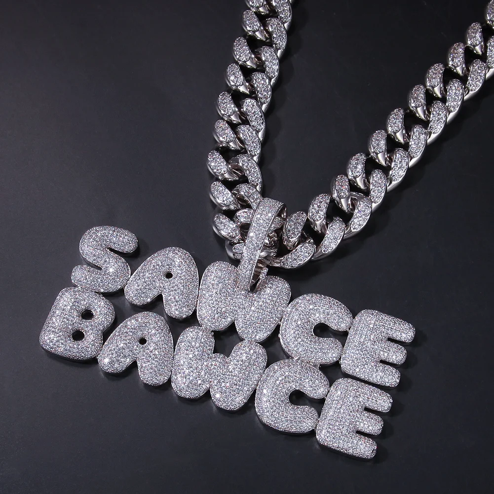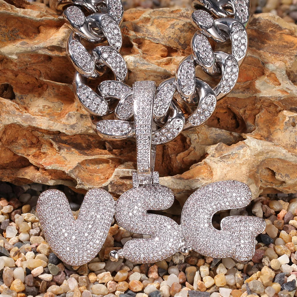 UIWN Custom Bubble Ожерелье с буквами с кубинской цепью 20 мм с именем мужчины, цирконий, подвеска, Совет, подарок, ювелирные изделия