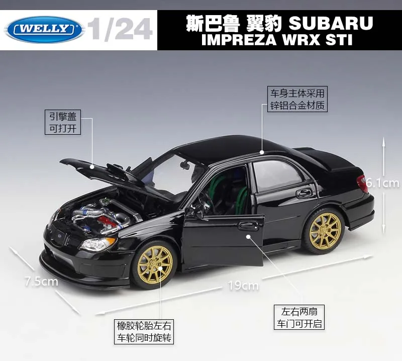 Welly литье под давлением 1:24 весы SUBARU WRX STI симулятор Классическая Металлическая Модель автомобиля сплав игрушка автомобиль спортивный автомобиль для детей подарочная коллекция
