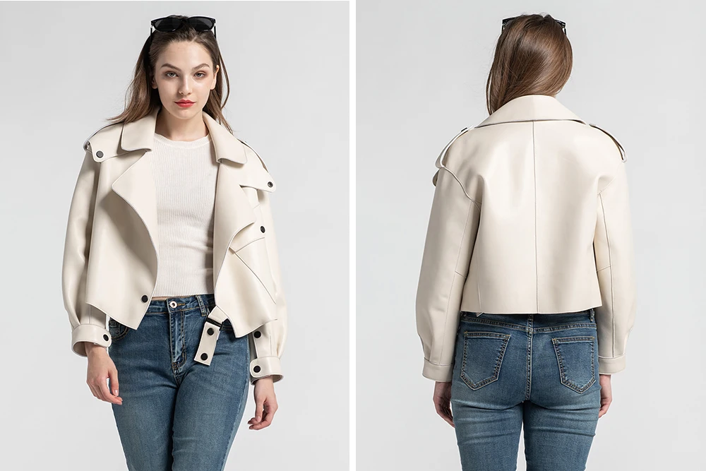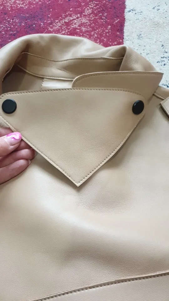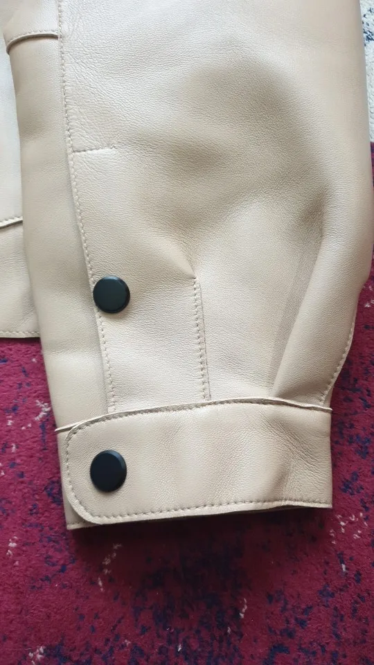 Куртка очень эффектная. Мягкая и гладкая. Кожа натуральная, изнанка проклеена эластичной подкладочной тканью. Запах присутствует, но не резкий, характерный для кожи. Фурнитура качественная. Швы ровные. Размер хорошо подошёл на параметры ОГ-90, ОТ-70, есть нужный эффект объёма, рукава не короткие.