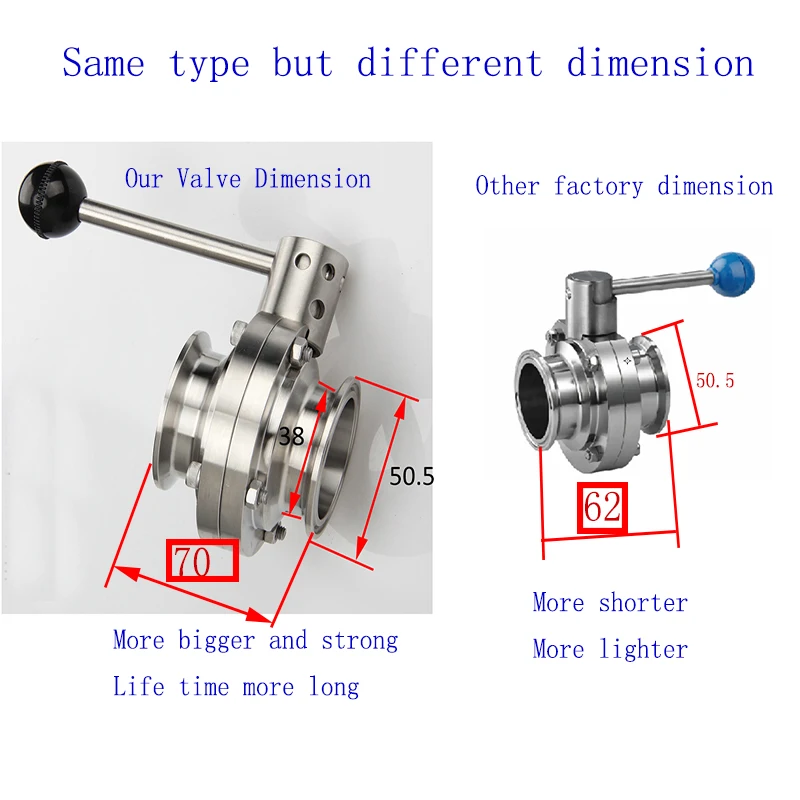Санитарный клапан-бабочка с тройным зажимом, от 12 до 2 дюймов, из нержавеющей стали SS304 SS316, клапан-бабочка для домашнего пивоварения
