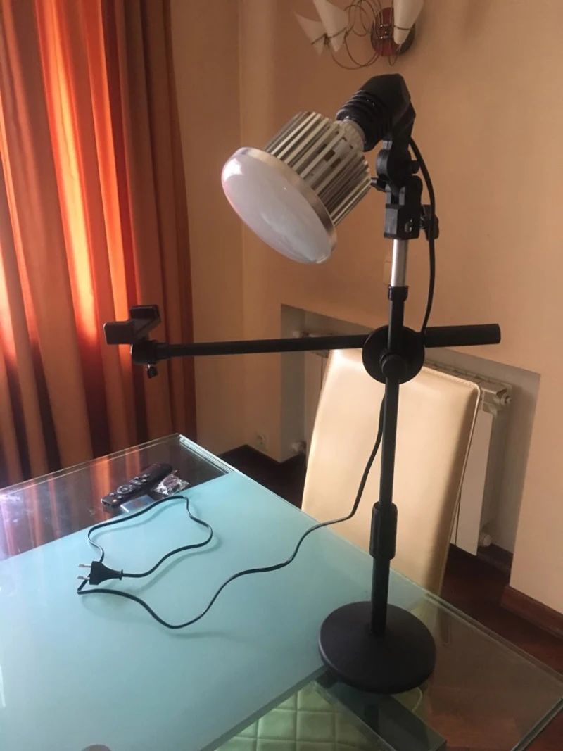 Это дисковая низкоугловая стойка для обуви, которая может легко снимать на рабочем столе под разными углами и очень популярна среди молодых людей и любителей фотографии. Материал стойки, используемый из нержавеющей стали + АБС, опорный стержень может быть свободно растянут вверх и вниз, а поперечный стержень также может поворачиваться на 360 °. С круглым металлическим основанием, он устойчив к падению. Металлический корпус, встроенный в экологический вес, увеличение, нескользящий, не легко царапает стол, диаметр 15 см толщина 2 см. Мини заполняющий светильник what in Set 2 работает при зарядке, 3 уровня регулировки яркости. Стильный и практичный. Все наборы поставляются с шаровой головкой и зажимом для телефона, рабочий размер 6-9 см; Комплект 2, набор 4 и набор 5 поставляется с пультом дистанционного управления Bluetooth, который может быть сопряжен с любой моделью смартфона. После сопряжения с пультом дистанционного управления Bluetooth с вашим смартфоном, можно легко использовать для фотографирования и съемки видео; Комплект 3. Набор 4 и набор 5 поставляется с супер ярким светодиодный лампой мощностью 35 Вт, состоящий из 140 светодиодный полупроводниковой лампы; Лампа мощностью 35 Вт, поставляемая в комплекте 3 и 4, цветовая температура может регулироваться через выключатель держателя лампы, но обратите внимание, что лампа в наборе 3 и 4 не может быть настроена на яркость; Только в наборе 5, есть светодиодный светильник мощностью 35 Вт с пультом дистанционного управления, вы можете использовать пульт дистанционного управления для регулировки цветовой температуры лампы и яркости лампы, может идеально решить ваши различные потребности в яркости светильник, настоятельно рекомендуем установить 5!Обратите внимание: