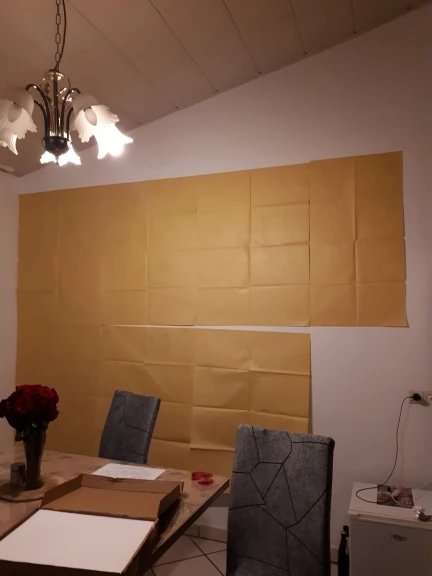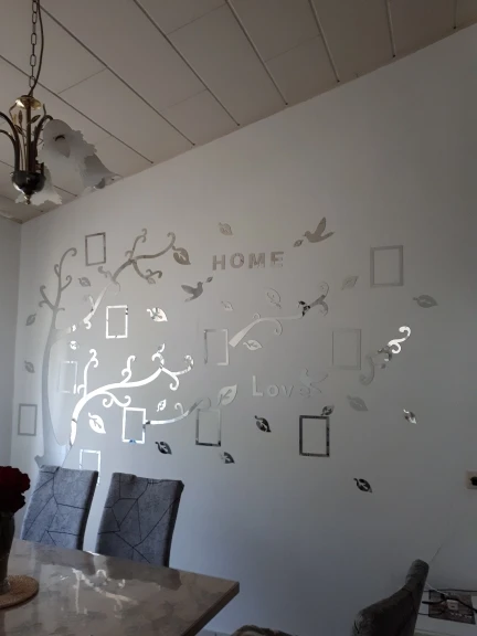 Очень красивый декор получился для кухни. Сначала приклеила трафарет а затем по трафарету уже клеила детали. Держатся конечно они прям очень сильно,попыталась переклеить деталь,оторвала обои все буквы "Е" пришли неправильной стороной,они были отзеркалины,но я исправила ситуацию:) а так в целом я в восторге ❤️