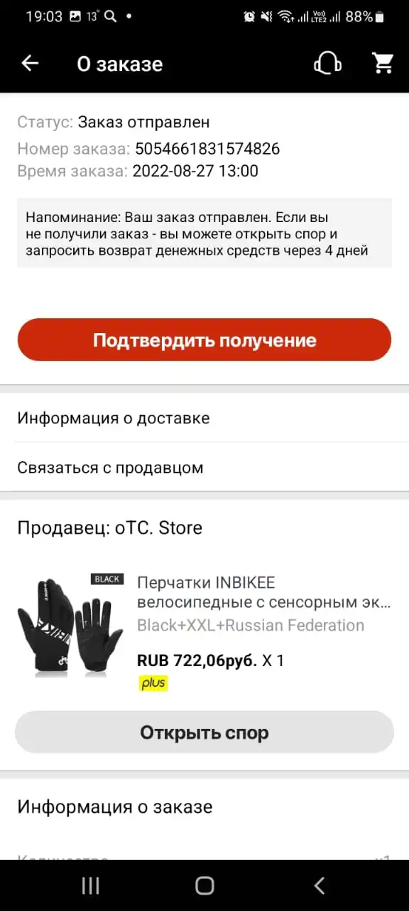 Заказ не прибывает в течение расчетного времени доставки. Покупатель может потребовать полный возврат средств.