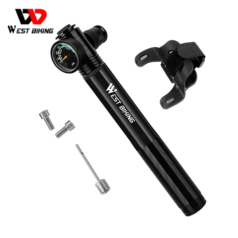 WEST BIKING воздушный насос для велосипедного велосипеда 300 фунтов/кв. дюйм высокого давления из алюминиевого сплава шины надувной насос для велосипеда с манометром велосипедные насосы